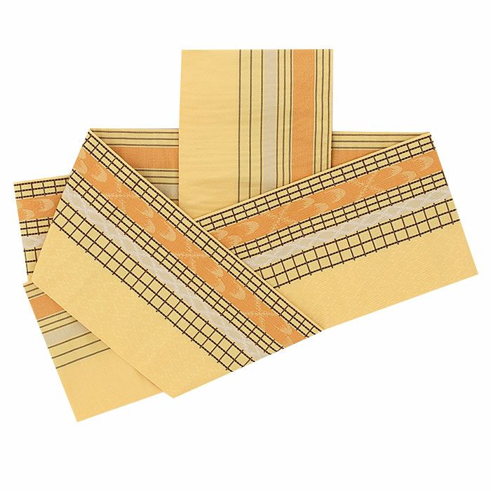 《お仕立て上り・送料込》【最短日お届け】夏の着物や浴衣など、盛夏を彩る八寸博多帯 夏帯 博多帯 帯 筑前帯 博多八寸名古屋帯 正絹 黒木織物 < お仕立て上がり > 博多職人 羅八寸 名古屋帯 < クリームイエロー /縞に有職文様 > 全通柄