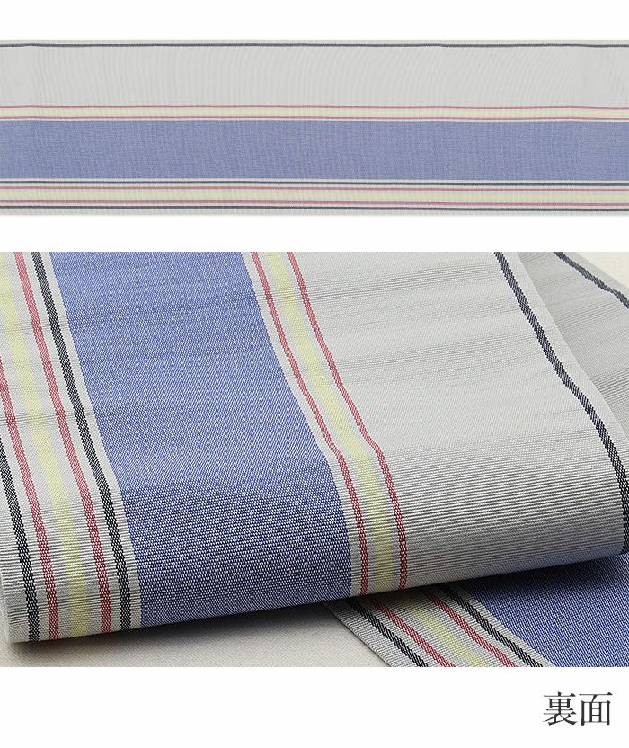 《お仕立て上り》【最短日お届け】夏の単衣・薄物のお着物に 夏用博多八寸帯 <お仕立て上がり> 本場筑前博多織<羅>八寸名古屋帯 <アイボリー×水色/縞献上> 黒木織物 全通織