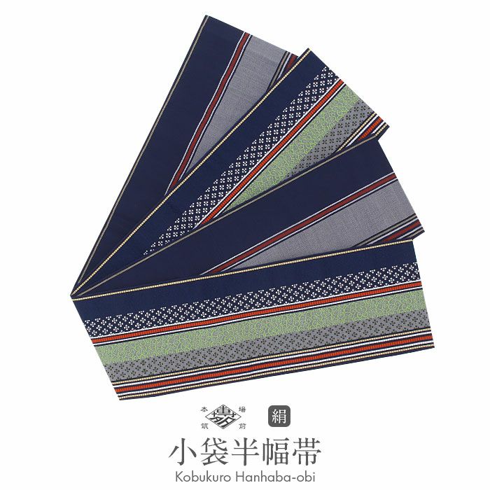 小紋 紬 街着 などの カジュアル な お着物に 博多織 半幅帯 普段用 博多帯 小袋帯 正絹 黒 青 白 緑 水色 縞 梅 大倉織物 日本製 fs