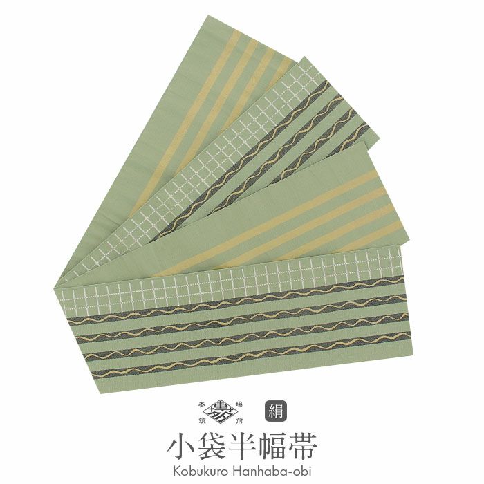 【最短日お届け】《博多帯》締めやすく帯崩れしにくい カジュアルなお着物に 半幅帯 帯 本場筑前博多織 小袋帯 正絹 緑 縞 格子 波 小野織物 日本製 小紋 紬 街着 カジュアル 半巾帯 小袋 博多 普段用