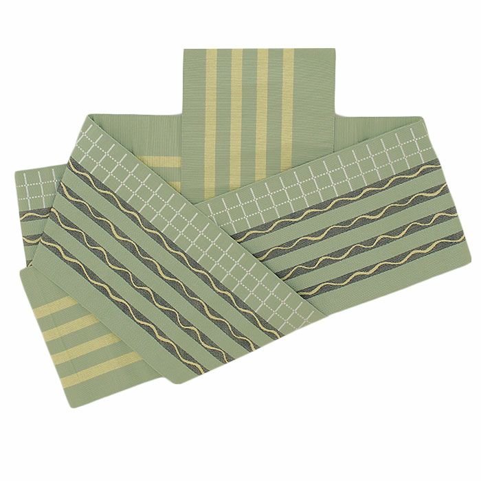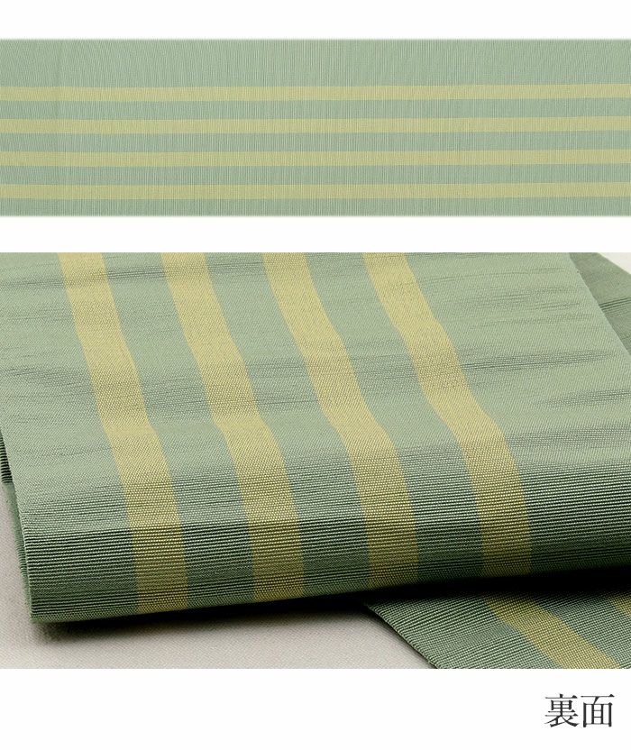 《お仕立て上り》【最短日お届け】夏の単衣・薄物のお着物に 夏帯 八寸 名古屋帯 <薄緑/縞に捩りリボン> 正絹 紗窓 本場筑前博多織 <福絖織物> 仕立て上がり