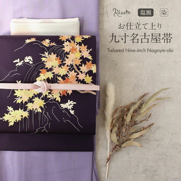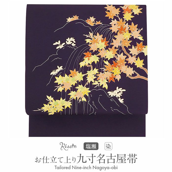 《お仕立て上り・送料込》【最短日お届け】お稽古や小紋・紬・色無地などカジュアルな着物に 名古屋帯 九寸 帯 < 紅葉 もみじ 滝 > 白木染匠 手描き友禅 正絹 五泉 駒塩瀬 純絹織物 仕立て上がり 日本製