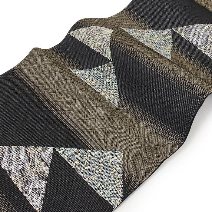 《お仕立て上り・送料込》【最短日お届け】夏の小紋 紋紗 色無地 御召 などのお着物に 名古屋帯 夏 夏名古屋帯 夏帯 茶色 黒 三角 縞 西陣織 三幸織物 普段用 九寸 仕立て上がり 絹 未使用 新品
