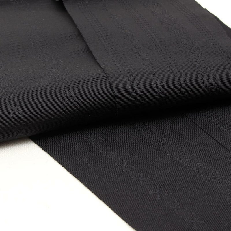 名古屋帯 夏 黒 九寸 帯 菊つなぎ 西陣織 佐々木染織 お仕立て上がり 六通柄 正絹