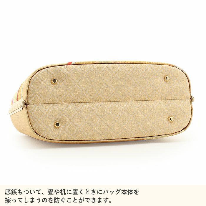 草履バッグセット 成人式 振袖用 <キステオリジナル> LLサイズ 日本製 正絹 帯地 <ゴールド/牡丹>