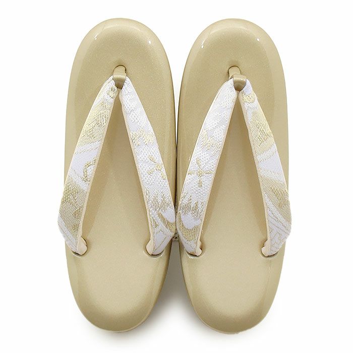 草履バックセット 成人式 振袖 草履 バッグ 厚底 Mサイズ 白 金 亀甲紋様 帯地 エナメル 日本製