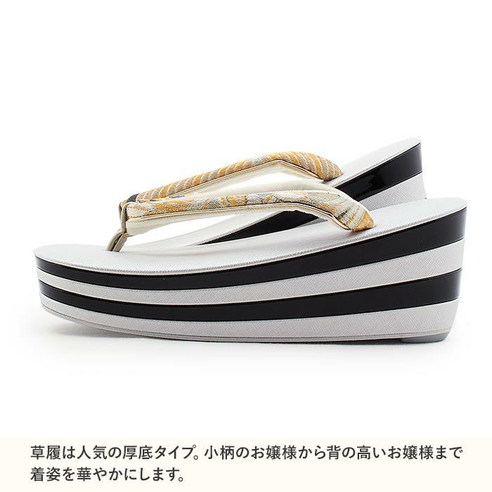 痛くなく歩きやすい、初めての方にも安心の履き心地 振袖草履 成人式 草履 振袖 レディース 世美庵 Lサイズ ゴールド ブラック オレンジ 金 黒 橙 華紋 帯地 合皮 4枚芯 厚底 ハイヒール 日本製