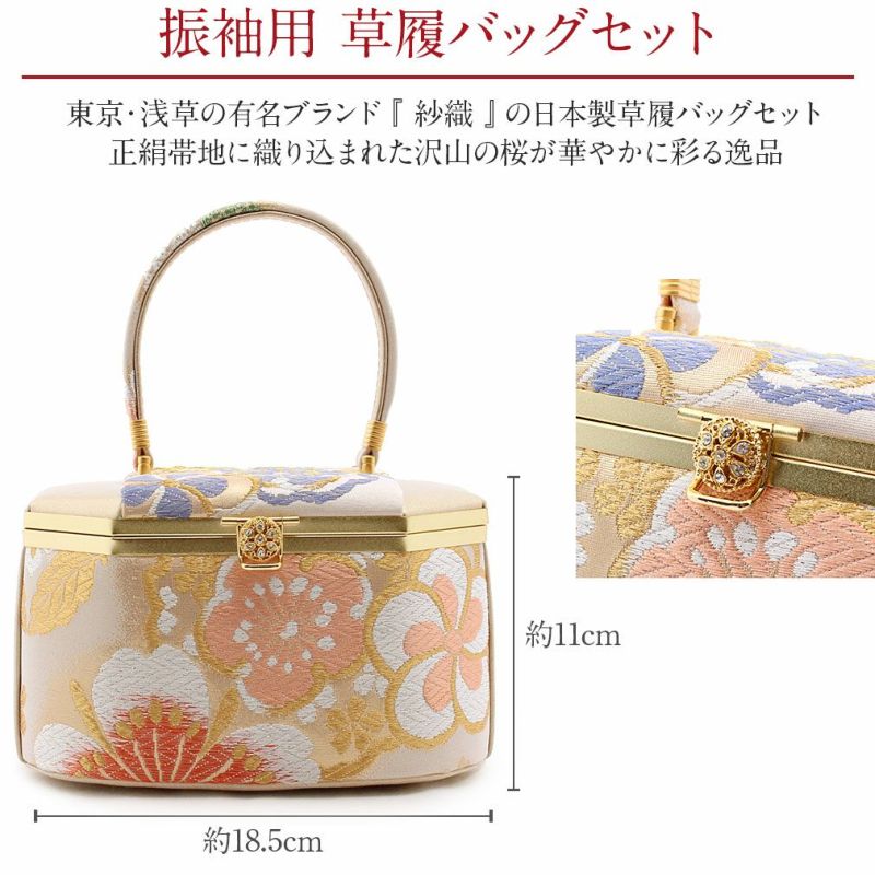 成人式 草履バックセット 振袖 Fサイズ フリーサイズ Lサイズ 華紋 桜 正絹帯地 日本製