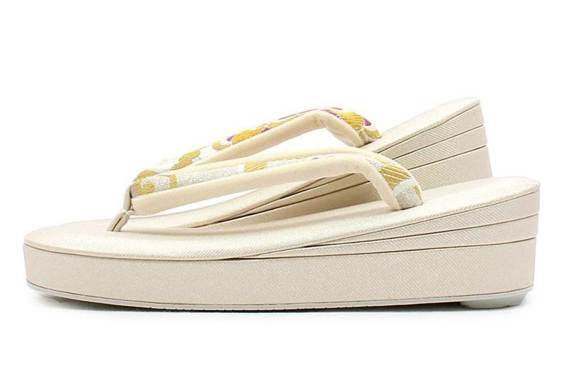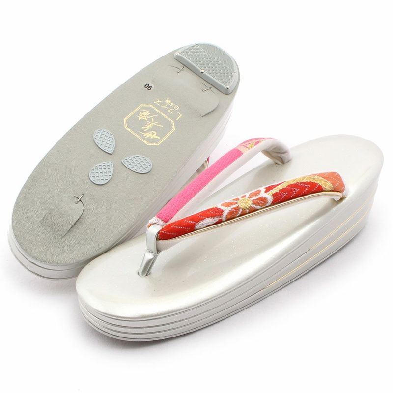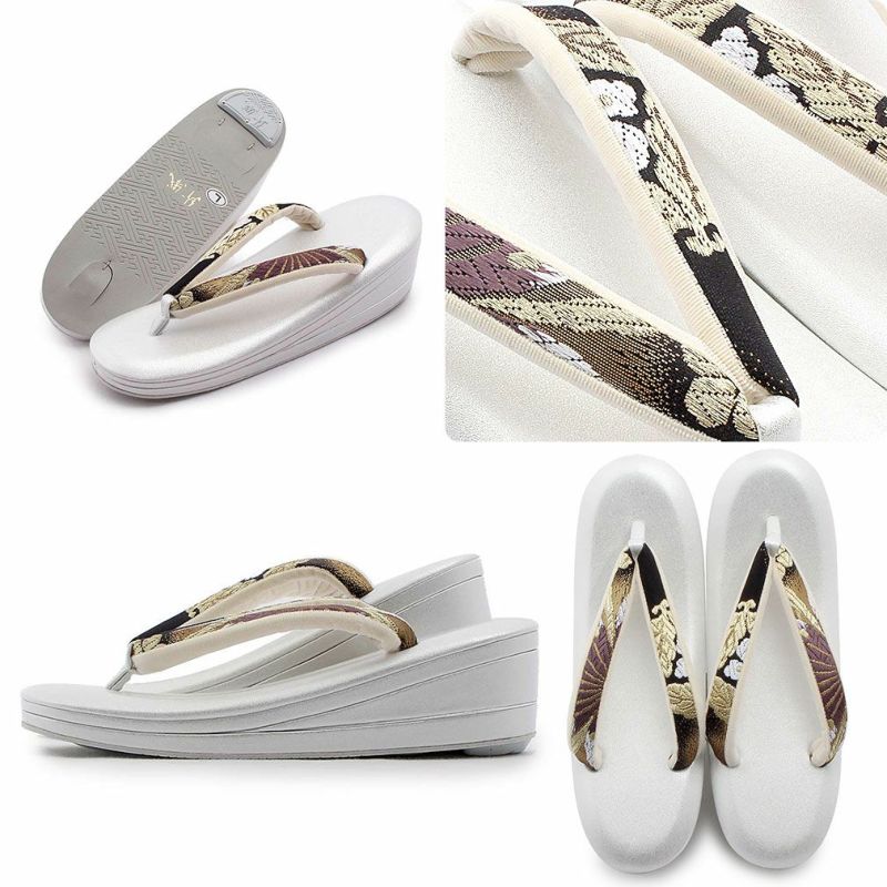 痛くなく歩きやすい、初めての方にも安心の履き心地 振袖 草履バッグセット 成人式 草履バッグセット 振袖用 紗織 Sサイズ 小さい 白 金 西陣織 正絹帯地 花菱 1の3枚芯 日本製 パールトーン加工