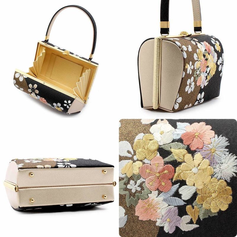 結婚式の黒留袖 色留袖や訪問着に合わせたい 草履バッグセット。痛くなくて歩きやすい、初めての方にも安心の履き心地。 留袖用草履バッグセット 訪問着用 草履バッグ 世美庵 Mサイズ / Lサイズ フリー 金 銀 シルバー ゴールド 花七宝 華紋 正絹 帯地 3枚芯 日本製