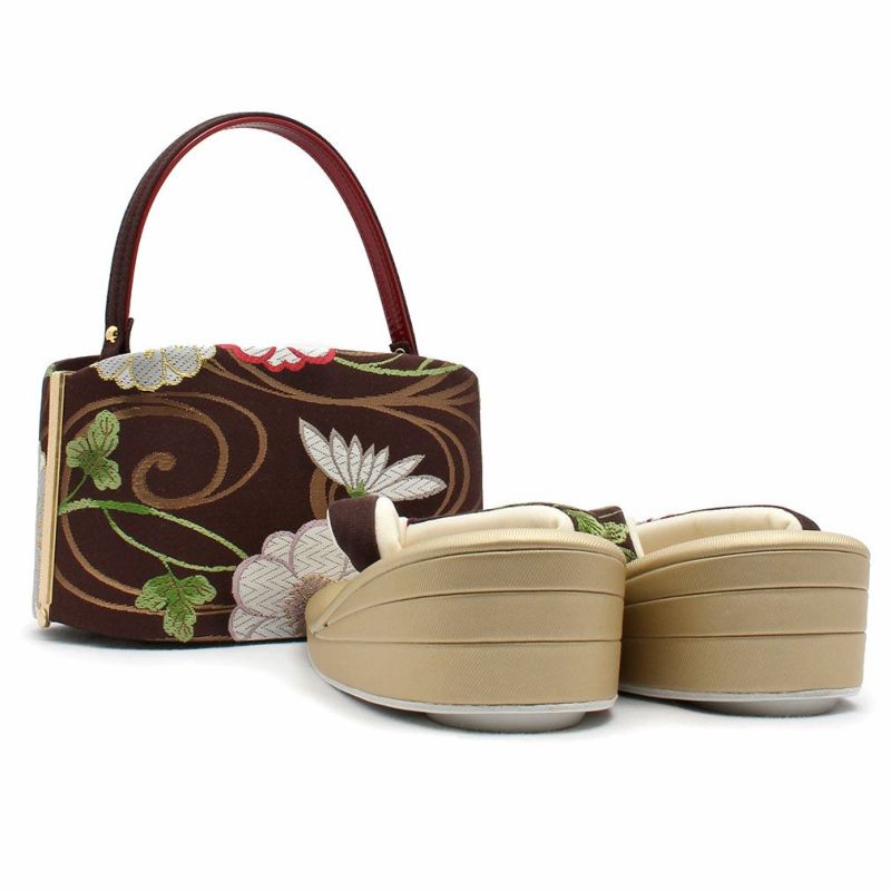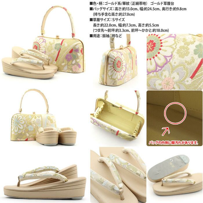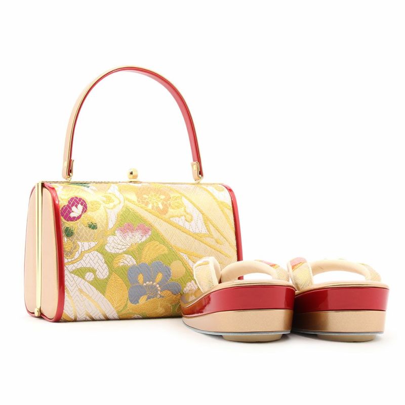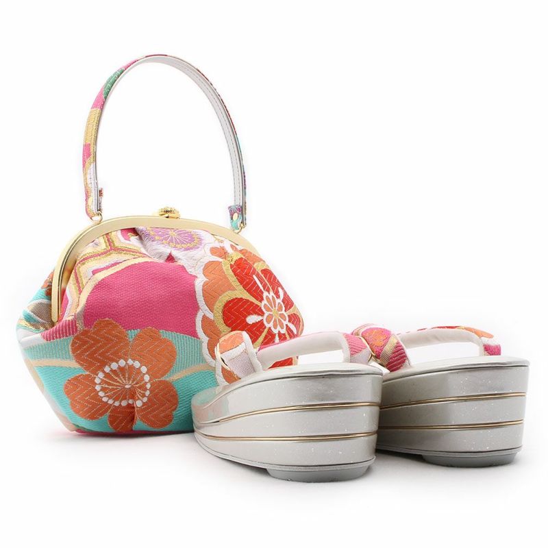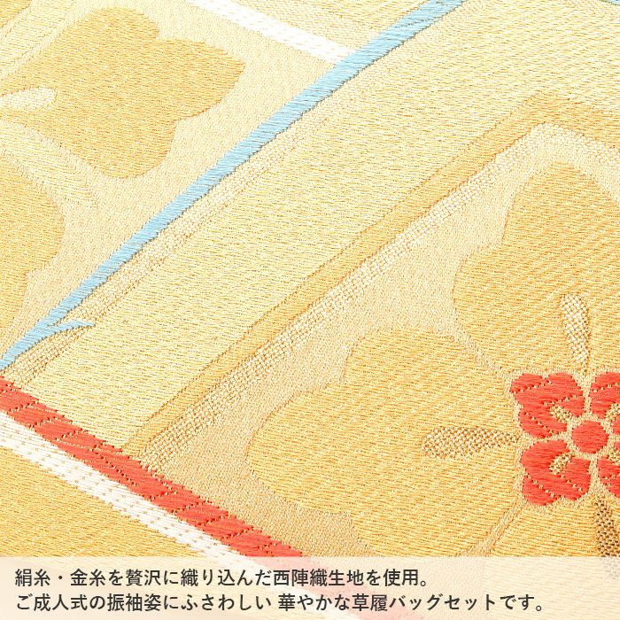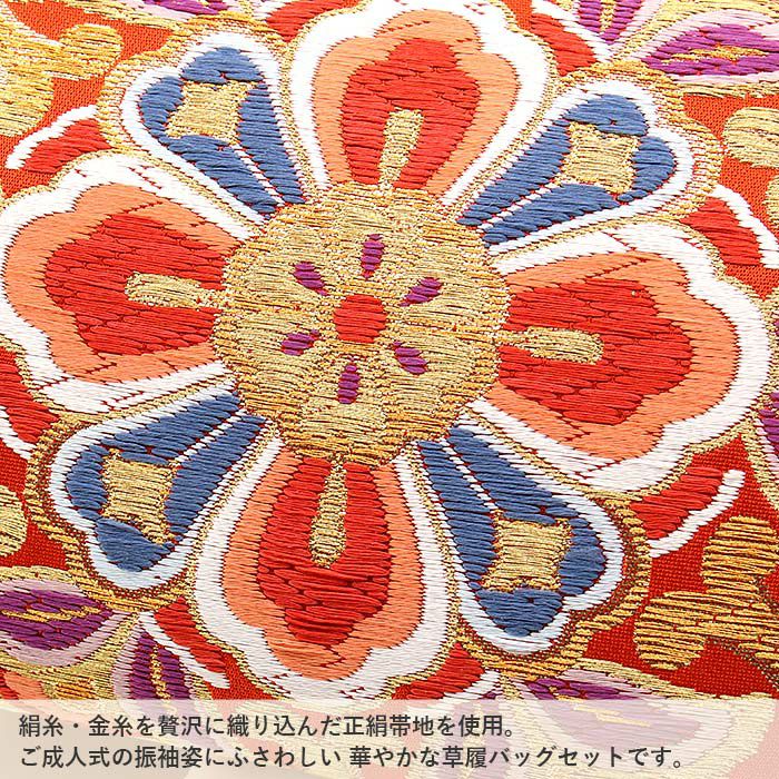 草履バックセット 成人式 振袖 花 華紋 花紋 正絹帯地 日本製 Sサイズ