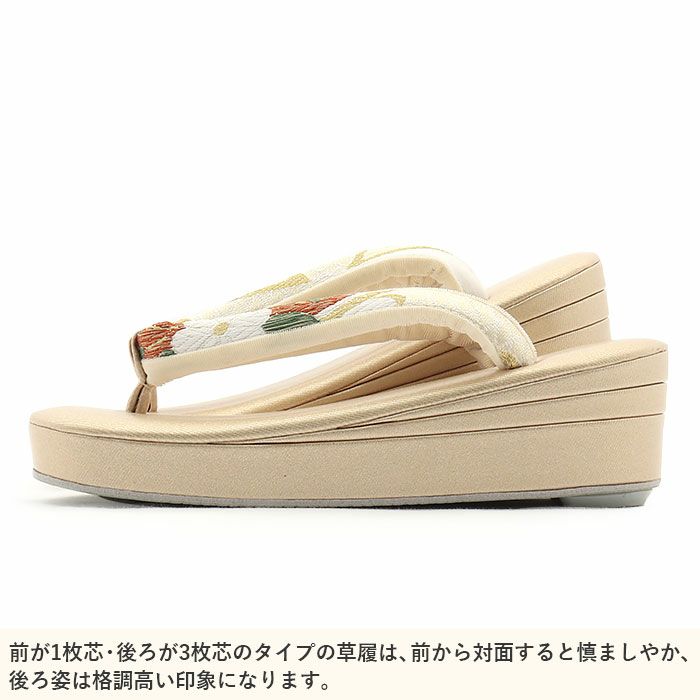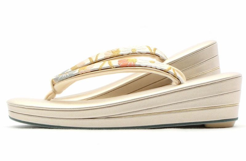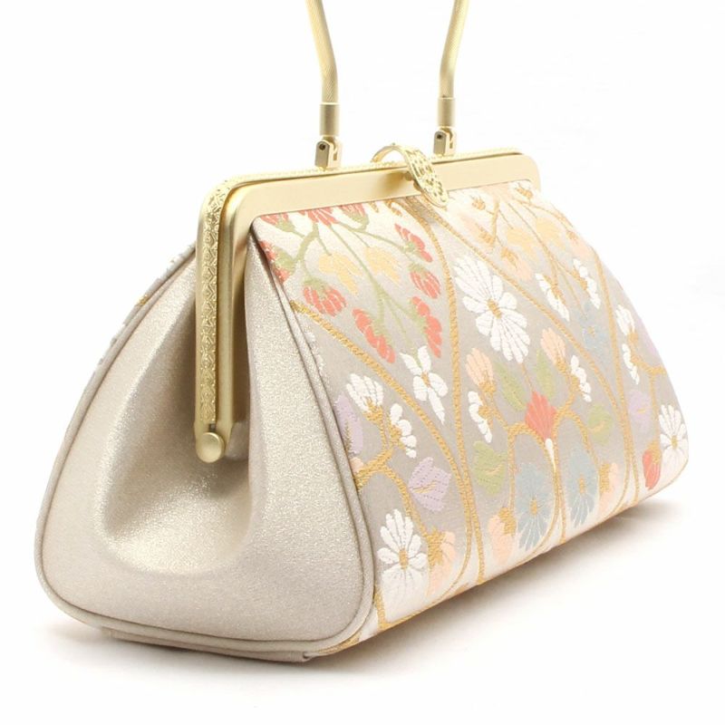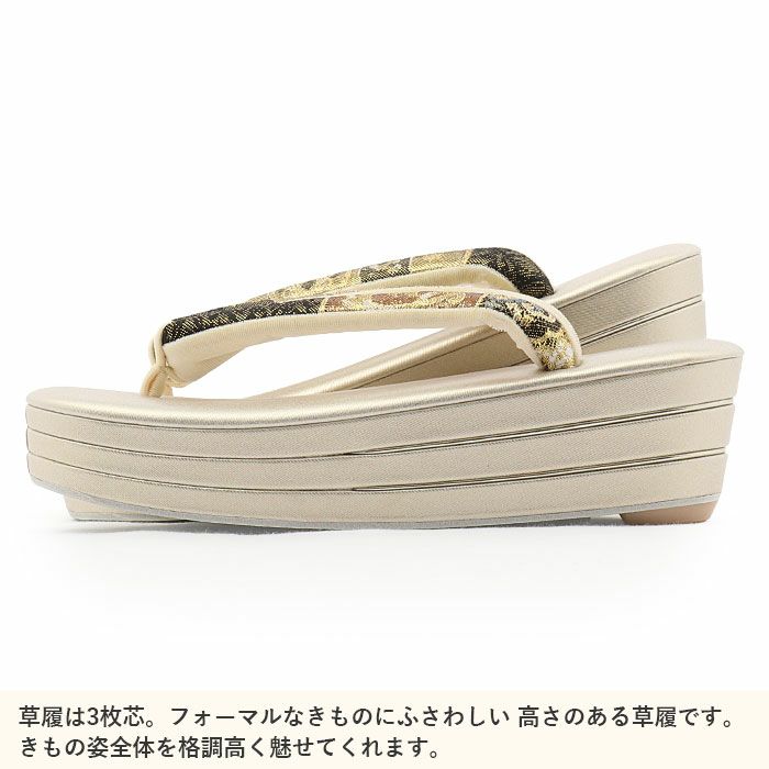 痛くなくて歩きやすい4枚芯の華やかな高さ 留袖用草履バッグセット 訪問着用 彩小径 フリー Lサイズ ゴールド クリームシルバー シャンパンゴールド 花菱 正絹袋帯地 凛華錦 4枚芯 日本製
