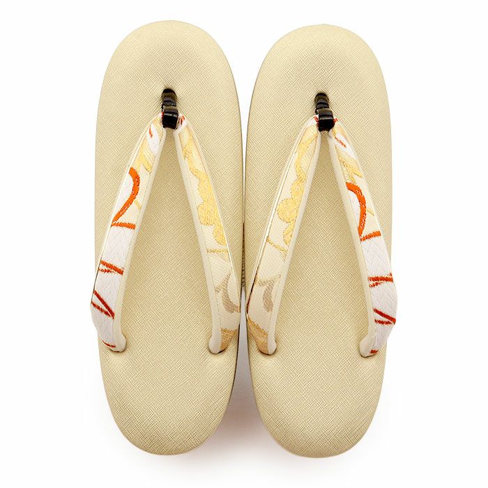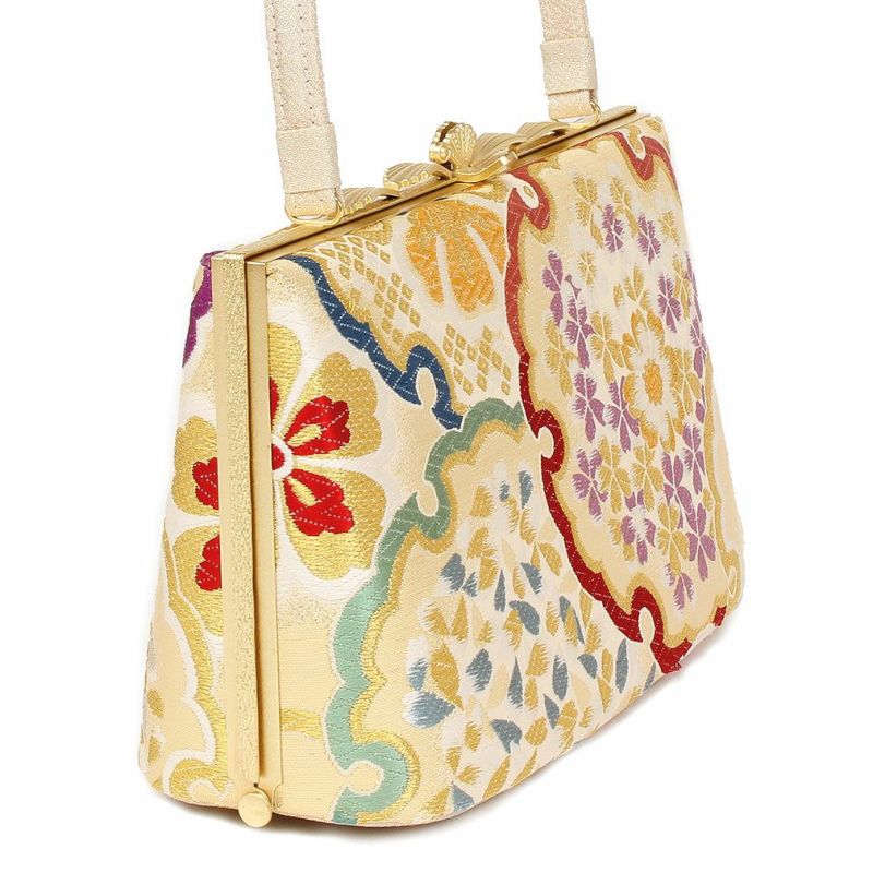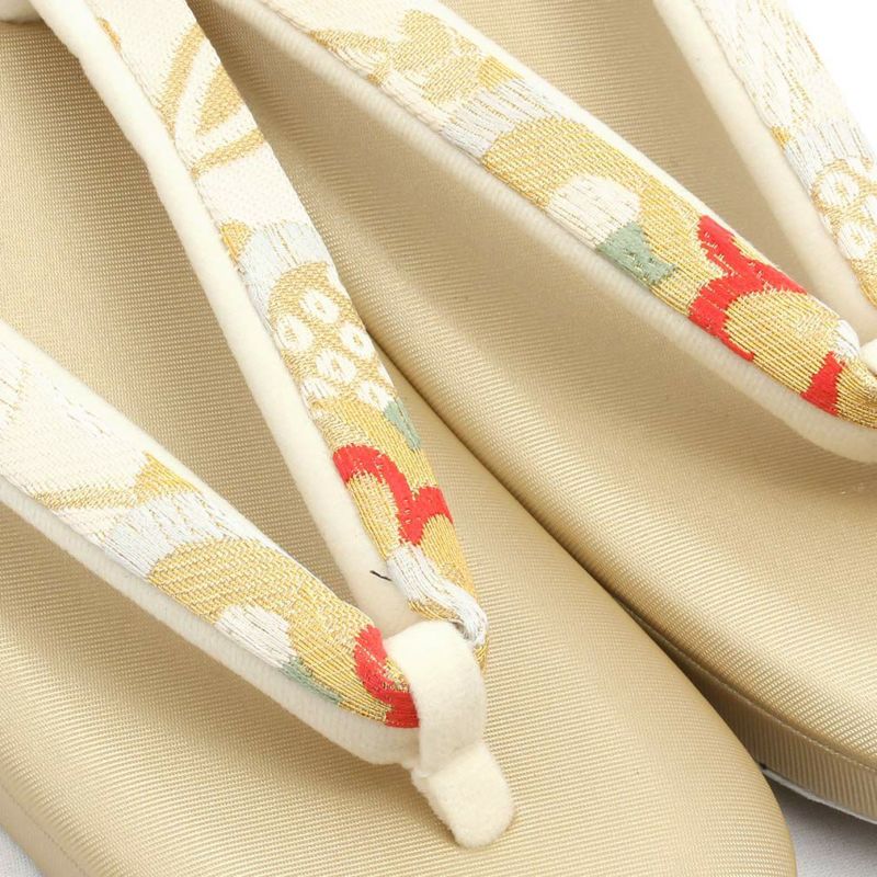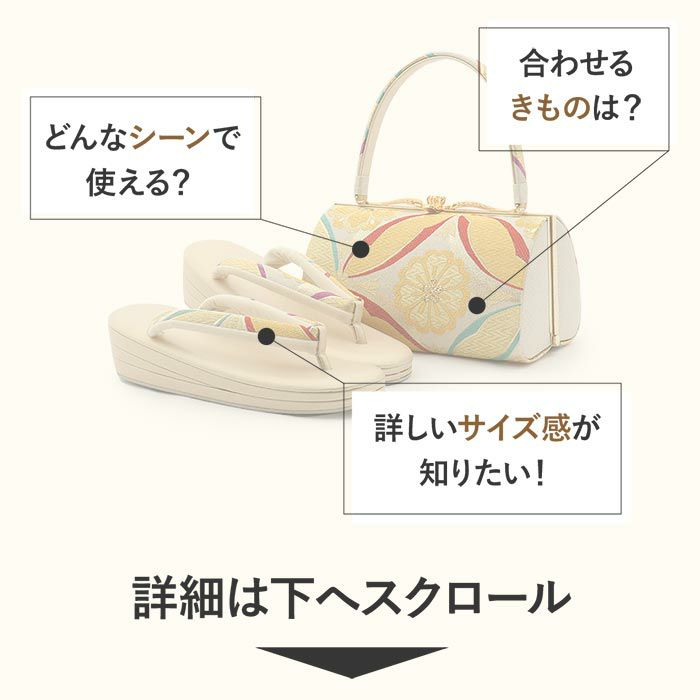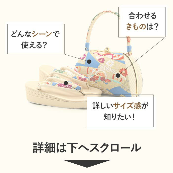 草履バッグセット 振袖用 フリーサイズ Lサイズ 日本製 京都西陣 <クリーム/七宝花尽くし>
