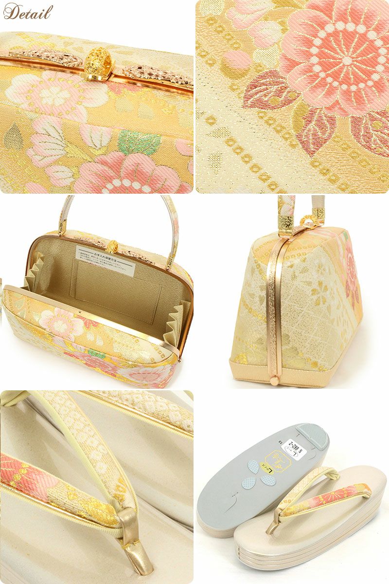 草履バッグセット 留袖用 訪問着用 <キステオリジナル 紗織> Sサイズ Mサイズ Lサイズ LLサイズ 日本製 正絹 帯地<ゴールド/菊菱>