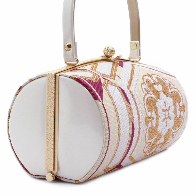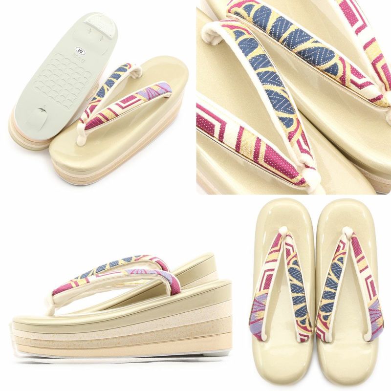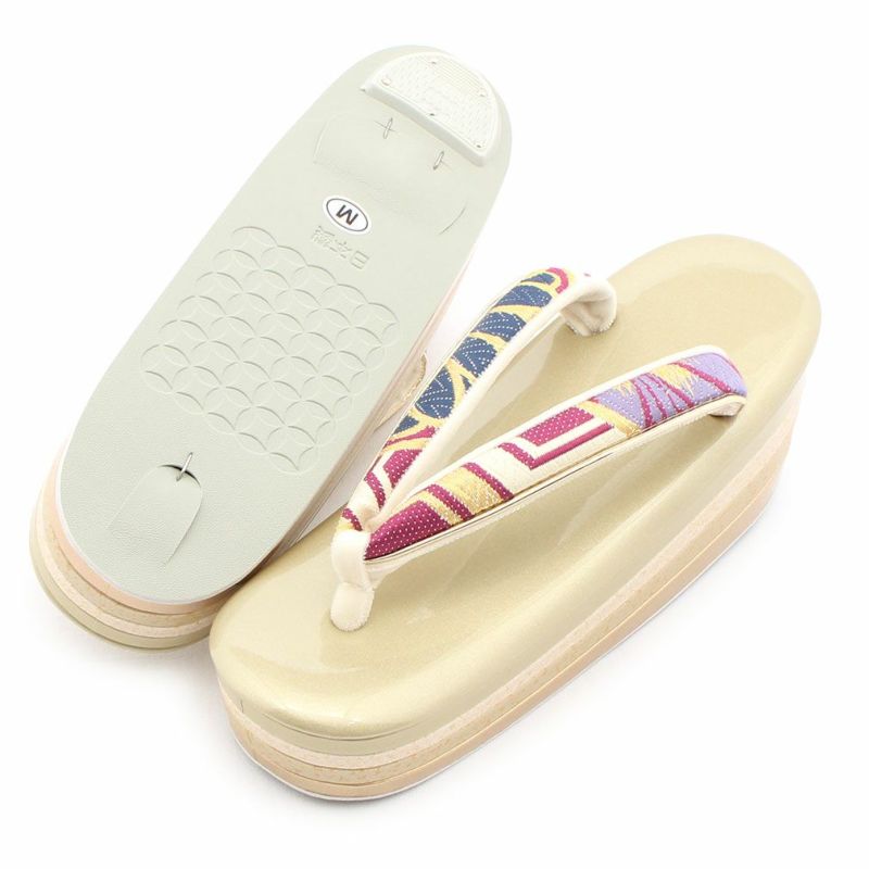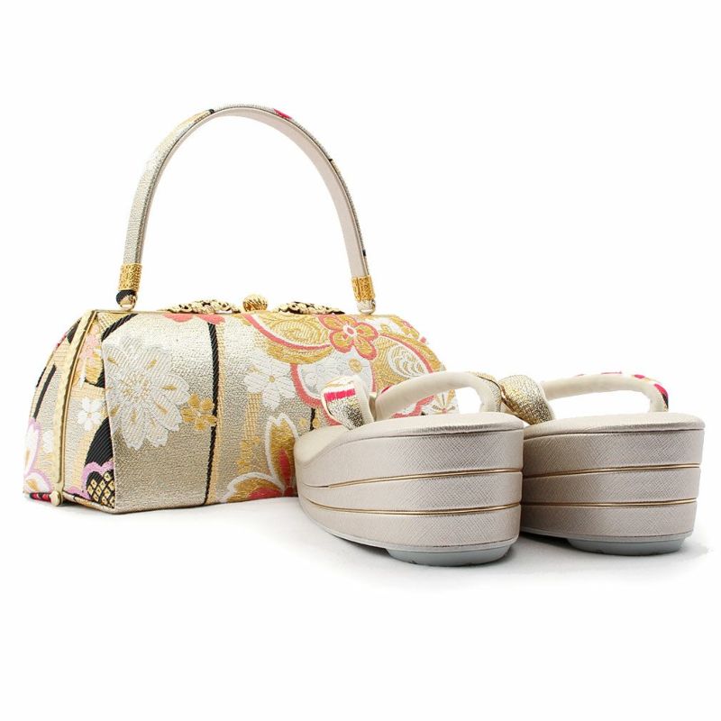 草履バックセット 成人式 振袖 草履 バッグ 厚底 Mサイズ 白 金 亀甲紋様 帯地 エナメル 日本製