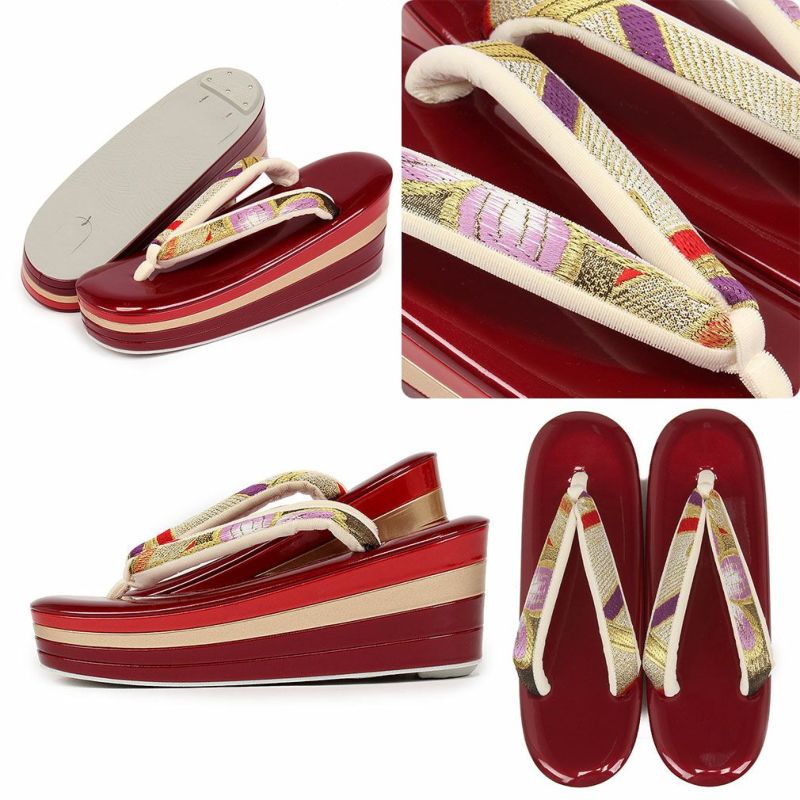 成人式や結婚式の華やかな振袖にぴったり 草履バッグセット 成人式 振袖用 キステオリジナル Sサイズ Mサイズ Lサイズ LLサイズ あずき 紫 椿 西陣織 エナメル 4枚芯 ハイヒール 厚底