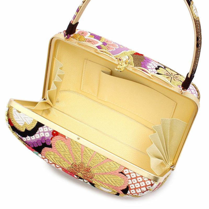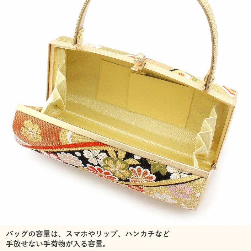 ≪在庫限り≫ 結婚式の黒留袖 色留袖や訪問着・振袖に 草履バッグセット 留袖用 訪問着用 振袖用 草履バッグ フリー L ゴールド 雪輪 華紋 正絹帯地 2枚芯 日本製