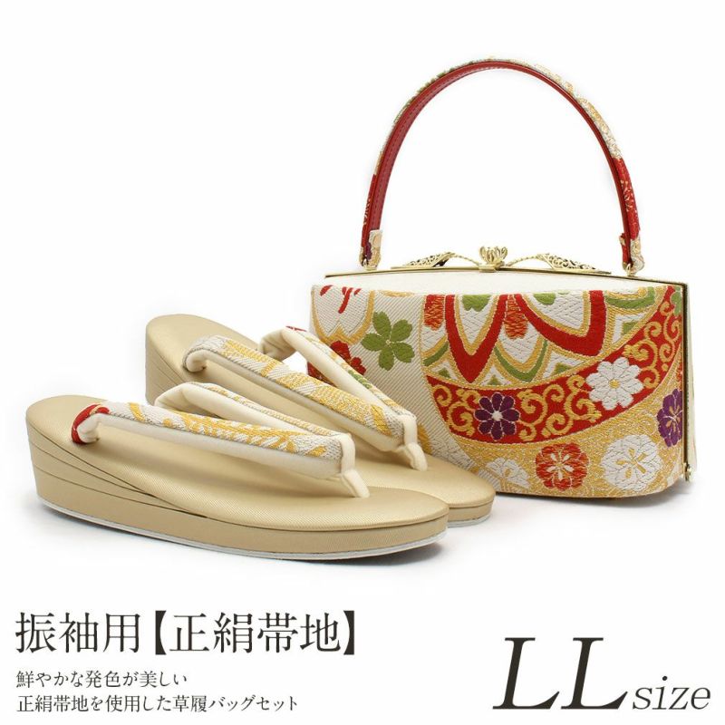 草履バックセット 成人式 振袖 正絹帯地 華紋 正絹 LLサイズ