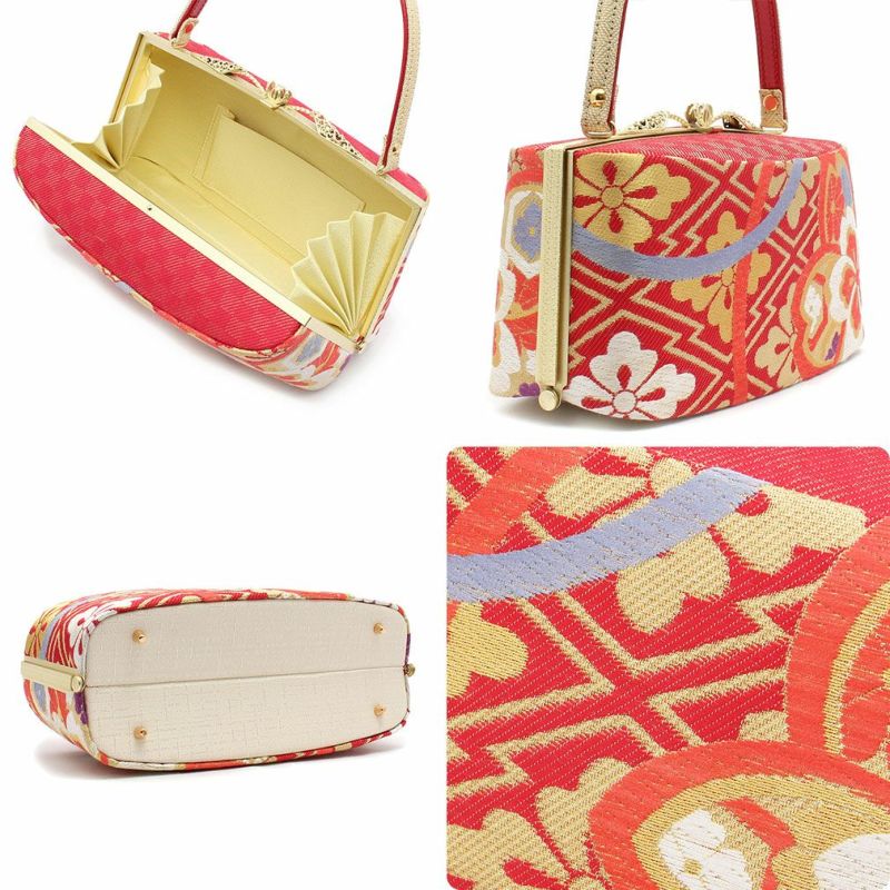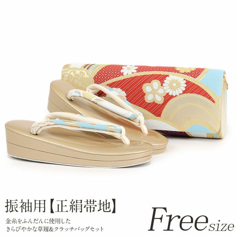 成人式や結婚式の華やかな振袖に アウトレット 振袖 草履 バッグ セット 成人式 草履バッグセット 振袖用 振り袖 フリーサイズ Lサイズ 華紋 桜 赤 金 橙 白 正絹帯地 日本製