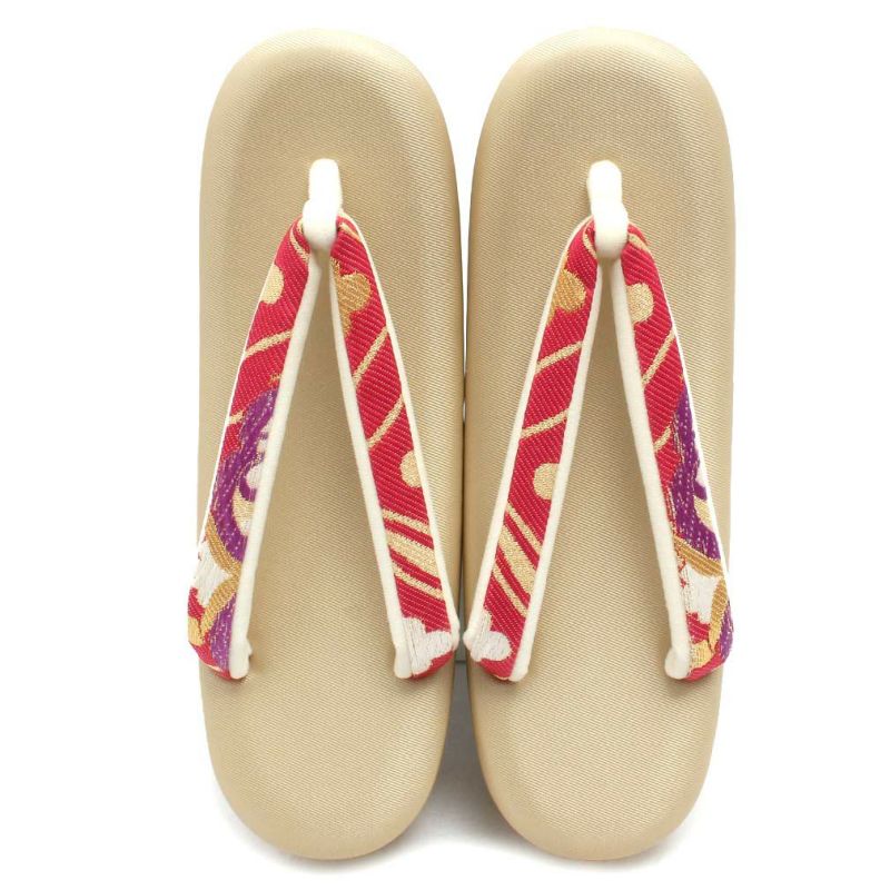 草履バッグセット 草履 セット フリーサイズ Lサイズ 赤 金 黒 八重梅 正絹帯地 日本製
