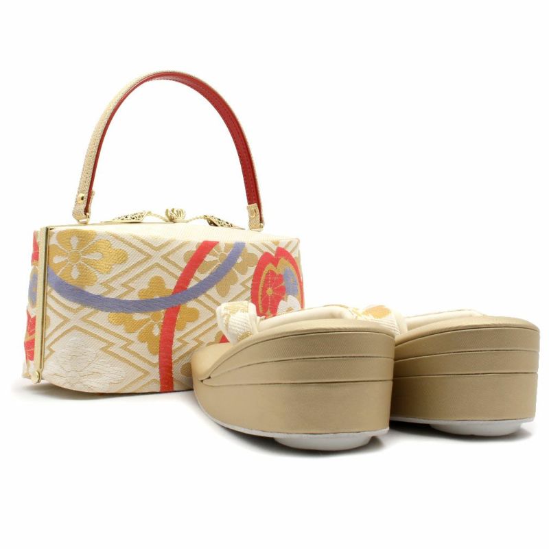 【アウトレット】振袖 草履 バッグ セット 成人式 草履バッグセット 振袖用 振り袖 M クリーム系 薔薇 正絹帯地 日本製