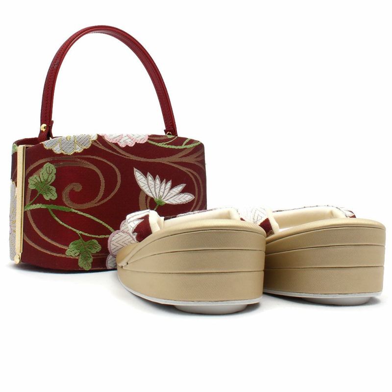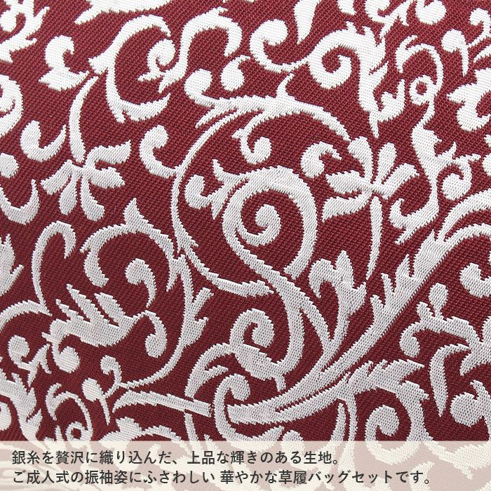 草履バッグセット 振袖用 フリーサイズ Lサイズ 日本製 京都西陣 <エンジ/吉祥花尽くし>