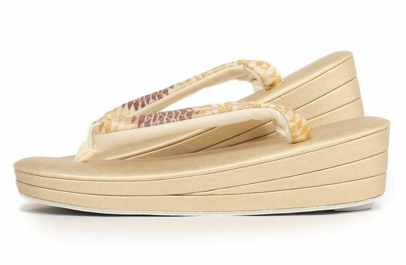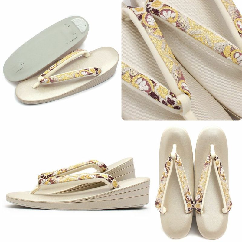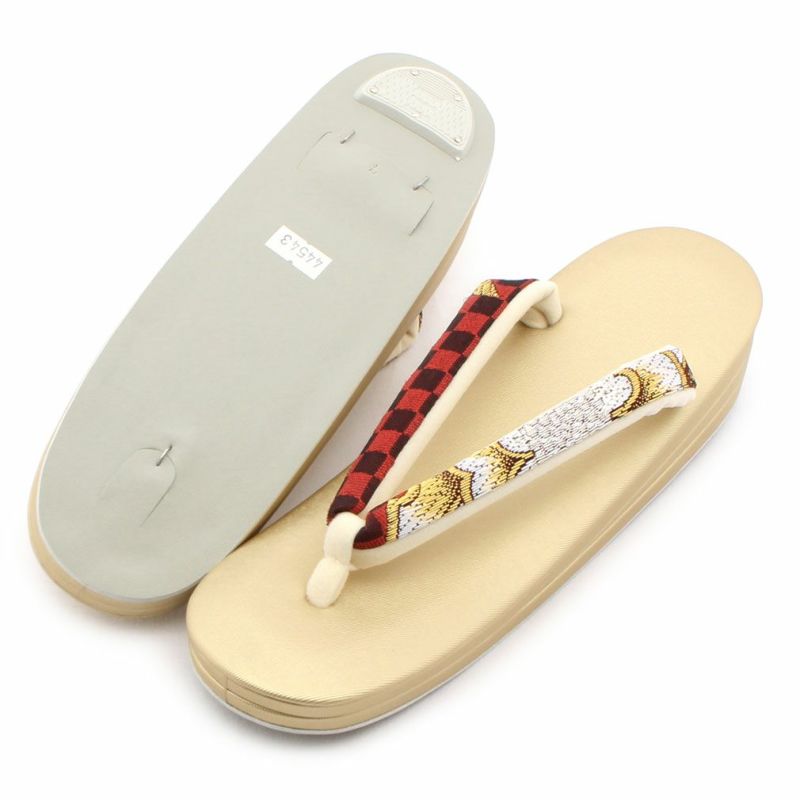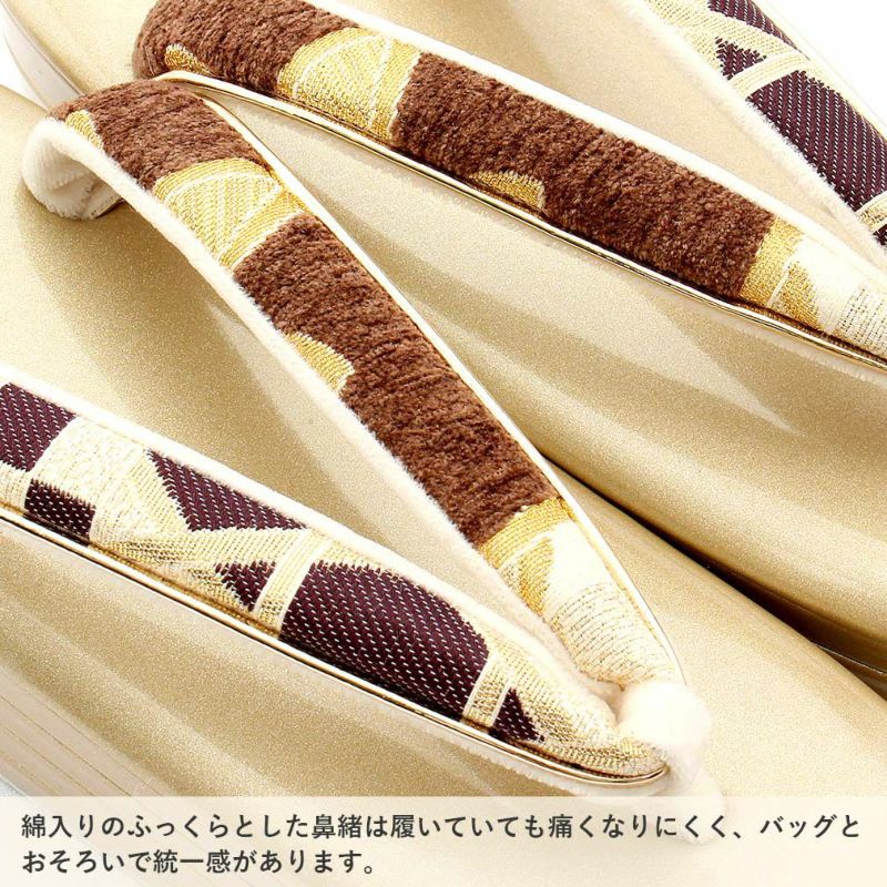 痛くなくて歩きやすい、初めての方にも安心の履き心地 留袖用草履バッグセット 訪問着用 彩小径 フリー Lサイズ シャンパンゴールド 金 菊菱 正絹帯地 合皮 3枚芯 日本製