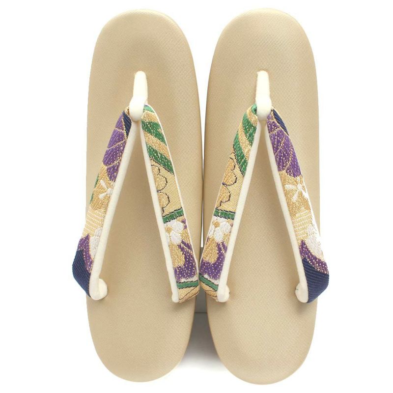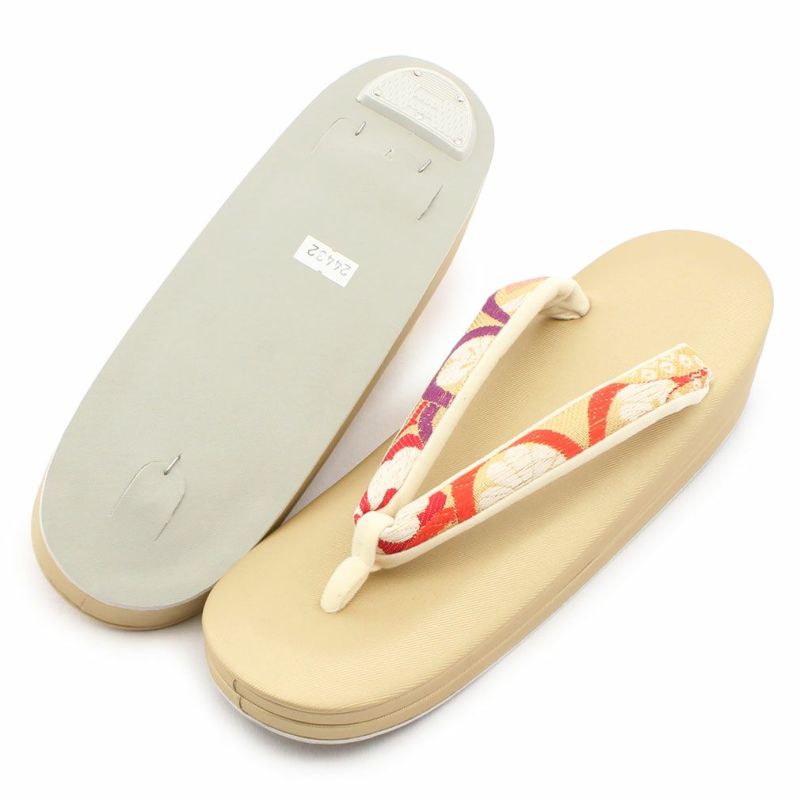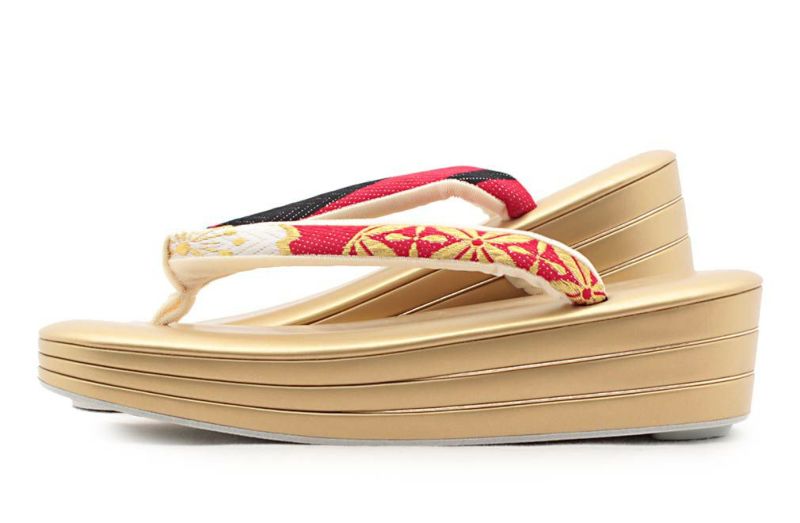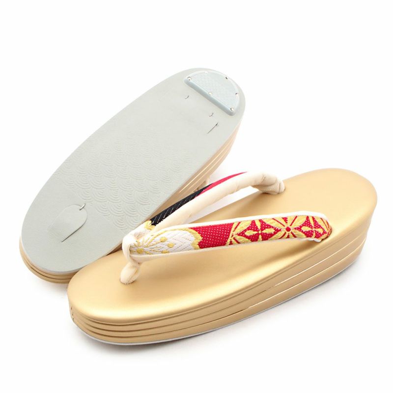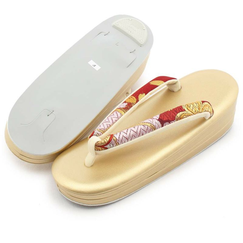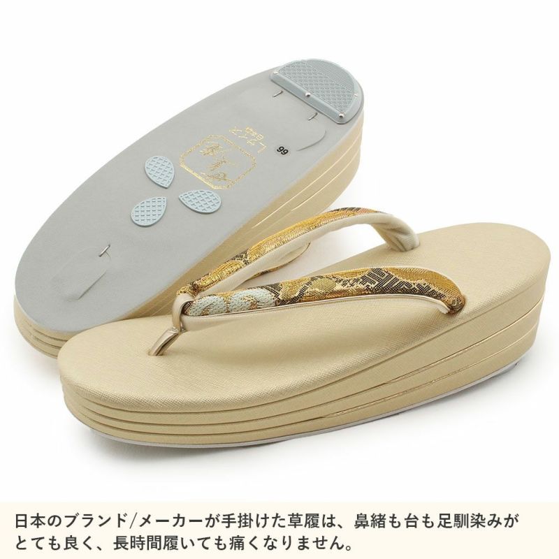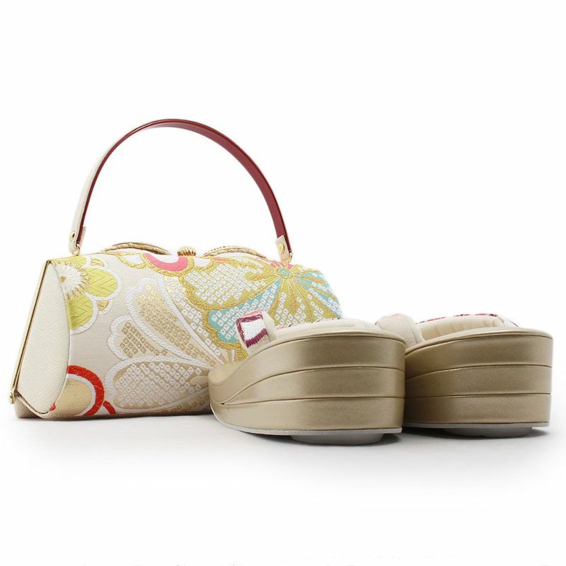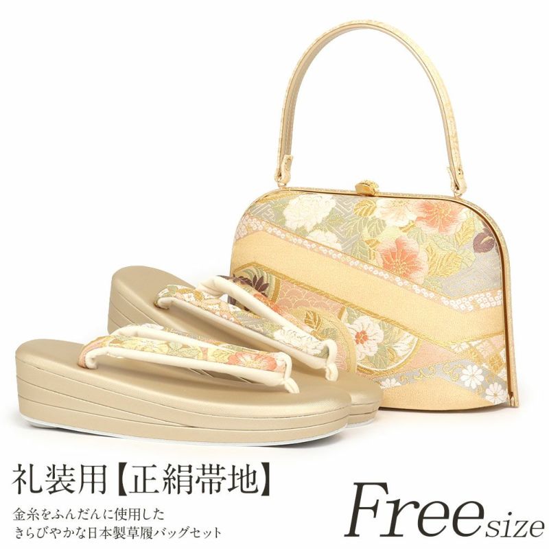 痛くなく歩きやすい、初めての方にも安心の履き心地 振袖 草履バッグセット 成人式 草履バッグセット 振袖用 紗織 フリー Lサイズ 金 花菱 西陣織 正絹帯地 3枚芯 厚底 ハイヒール ZULEN 日本製