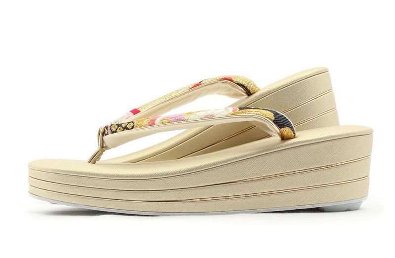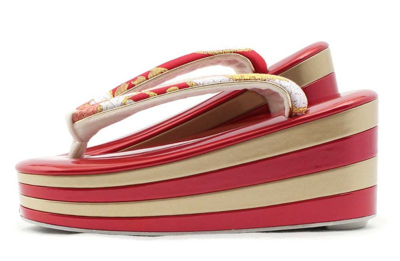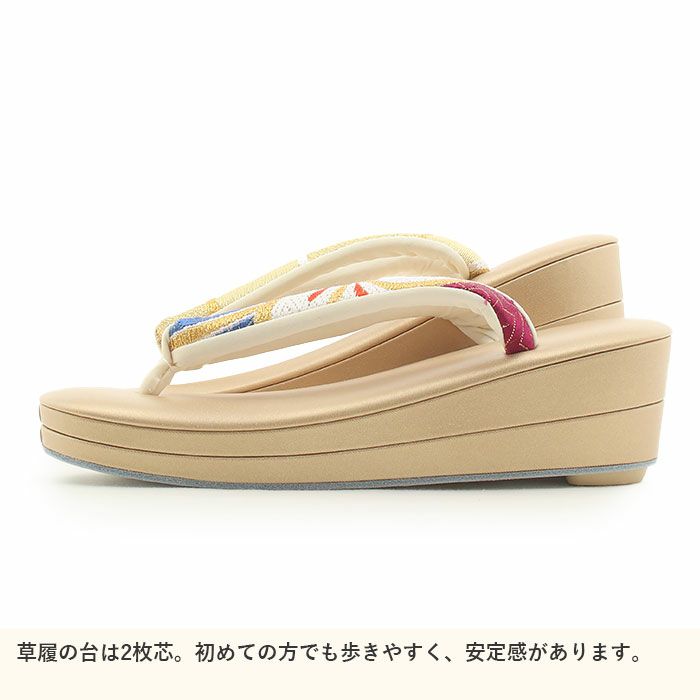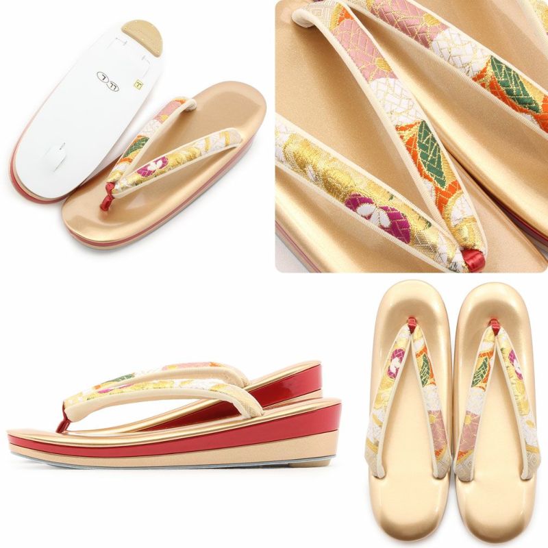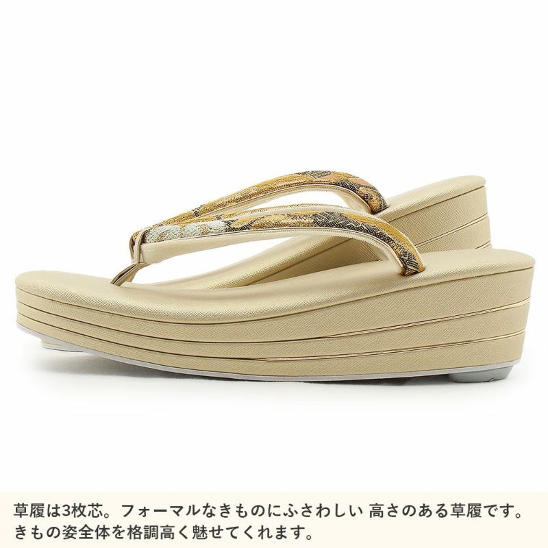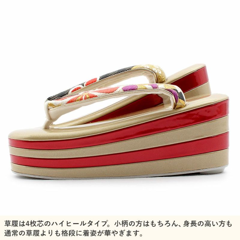 痛くなく歩きやすい、初めての方にも安心の履き心地 草履バッグセット 振袖用 紗織 沙織 Mサイズ Lサイズ 金 ゴールド 西陣織 正絹 帯地 4枚芯 厚底 ハイヒール 日本製