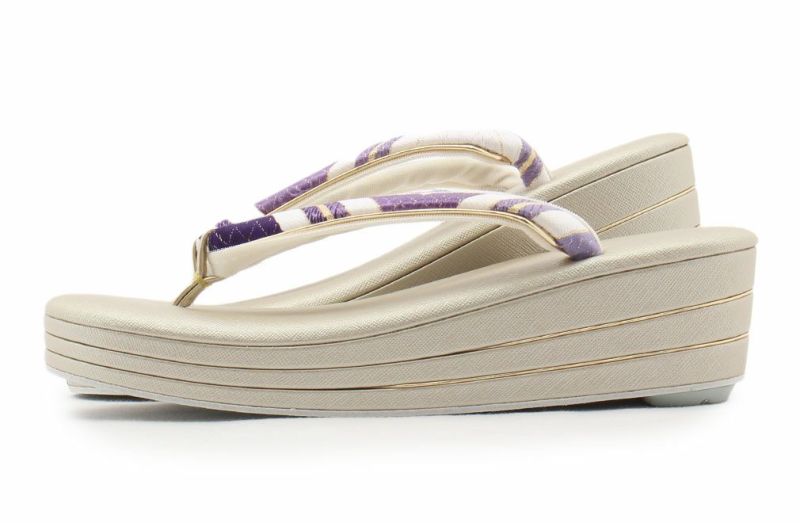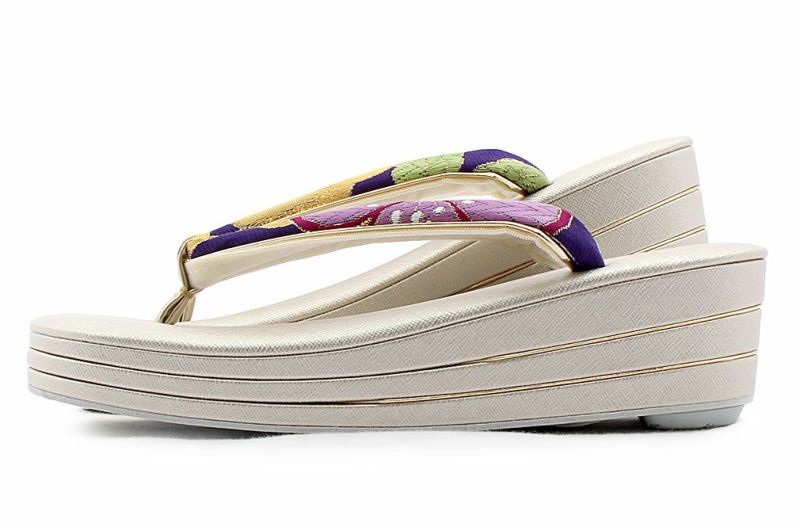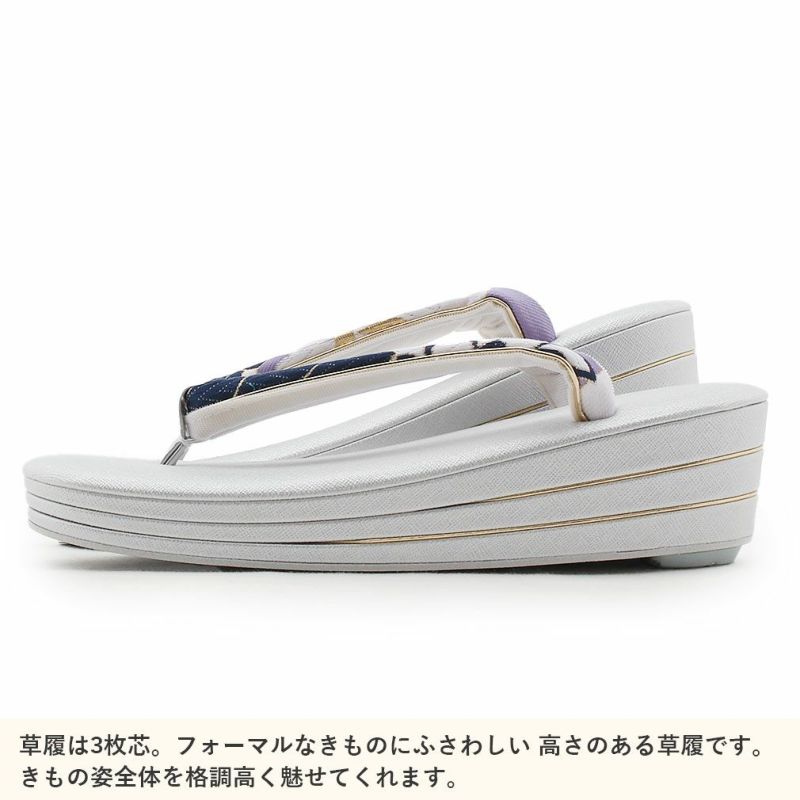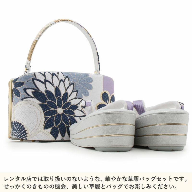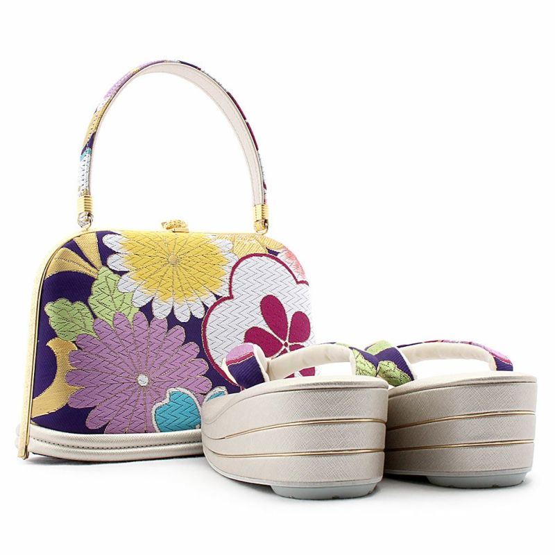 成人式や結婚式の華やかな振袖にぴったり 草履バッグセット 成人式 振袖用 キステオリジナル Sサイズ Mサイズ Lサイズ LLサイズ 灰 白 紫 百合 西陣織 帯地 合皮 4枚芯 ハイヒール 厚底
