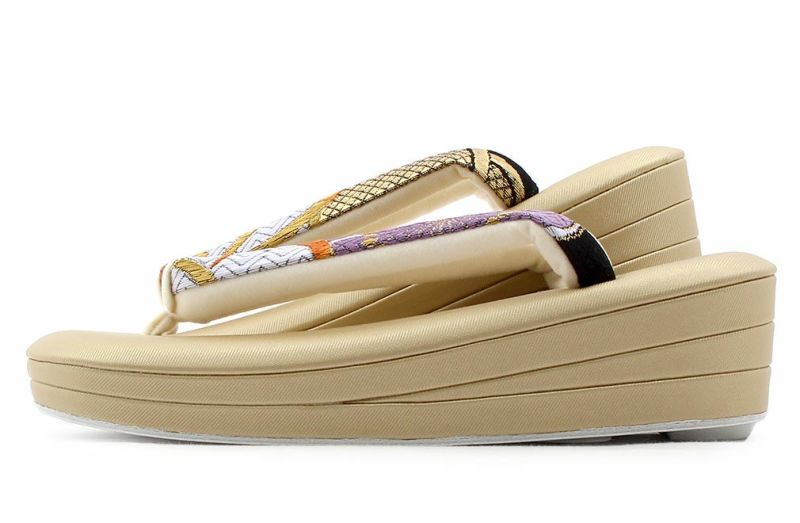 痛くなくて歩きやすい「優花緒」仕様 留袖用草履バッグセット 訪問着用 草履バッグ 世美庵 Lサイズ 金 アイボリー 変り立涌 正絹 袋帯地 3枚芯 日本製 優花緒