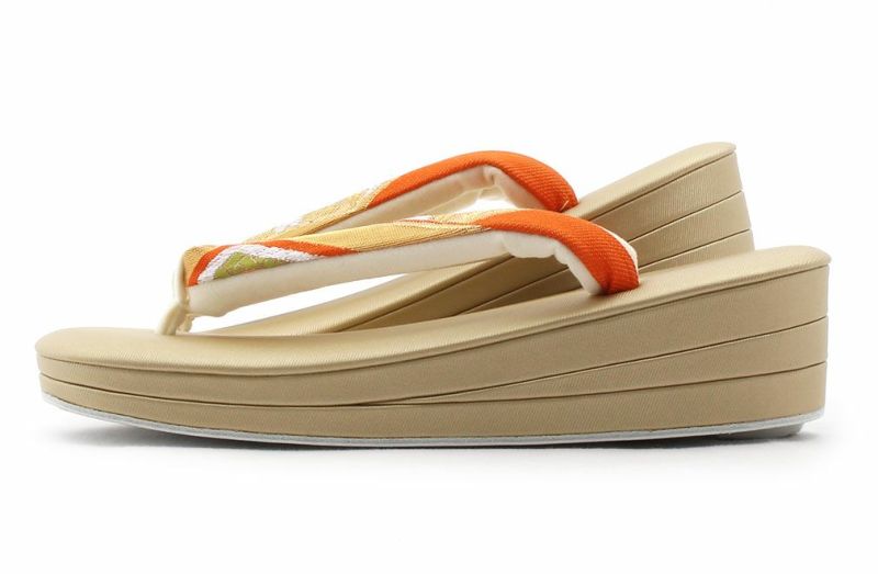 痛くなく歩きやすい、初めての方にも安心の履き心地 草履バッグセット 成人式 振袖用 成人用 世美庵 Lサイズ 橙 オレンジ ゴールド 花紋 桜 袋帯地 3枚芯 日本製