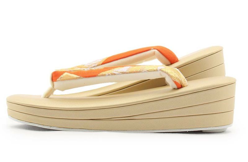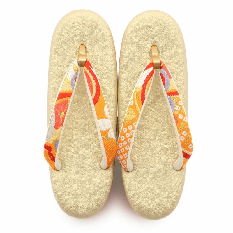 痛くなく歩きやすい、初めての方にも安心の履き心地 振袖 草履バッグセット 成人式 草履バッグセット 振袖用 彩小径 Lサイズ オレンジ 金 花文 華文 亀甲 正絹袋帯地 合皮 3枚芯 日本製