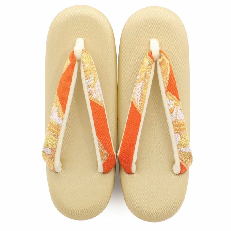 草履バッグセット 草履 セット フリーサイズ Lサイズ Lサイズ 橙 金 赤 花菱 華紋 正絹帯地