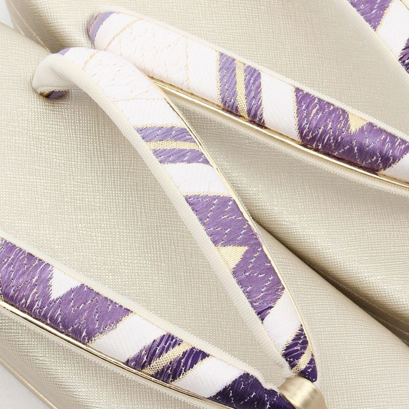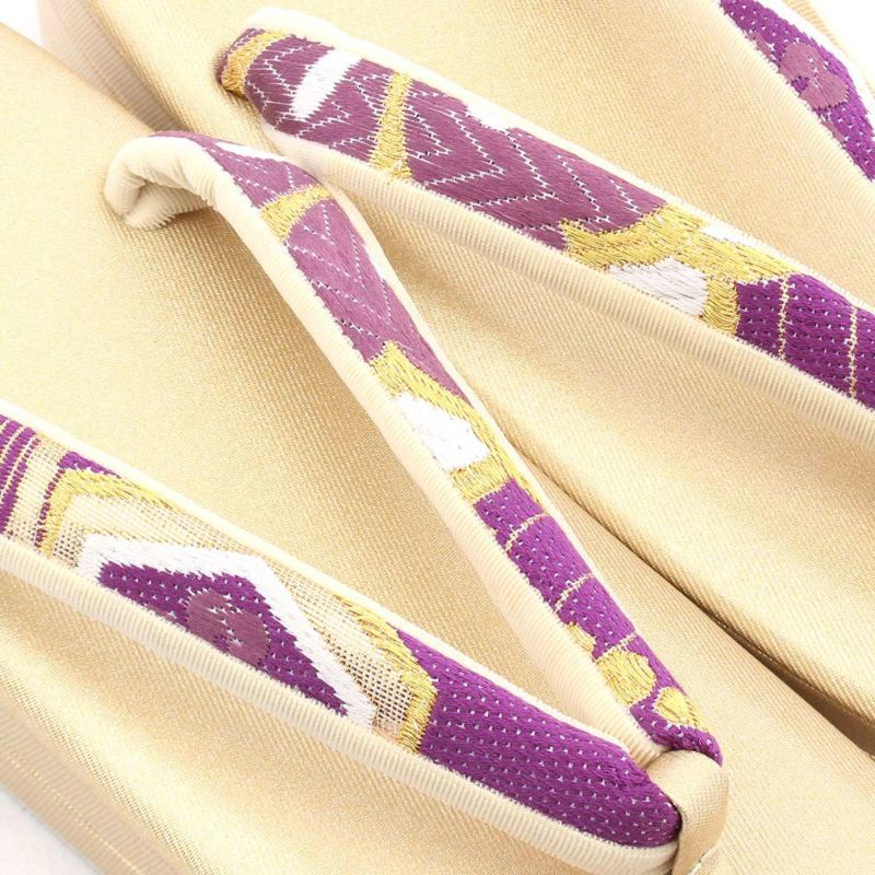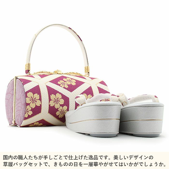 成人式や結婚式の華やかな振袖に合わせたい草履バッグセット。 草履バッグセット 振袖用 Lサイズ フリー 紫 クリーム 亀甲 桜 正絹 2枚芯 優花緒 華三彩 日本製