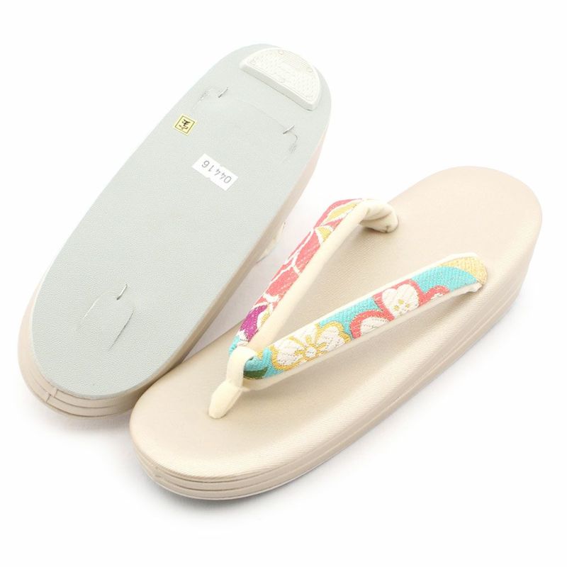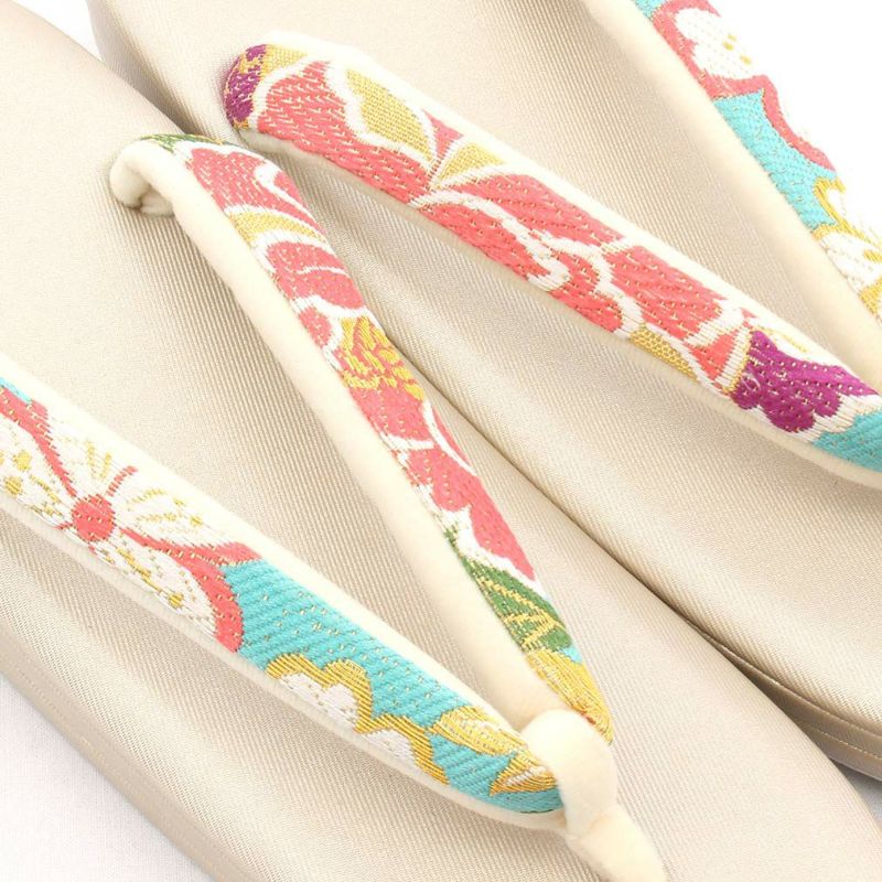 痛くなくて歩きやすい4枚芯の草履 草履バッグセット 成人式 振袖用 成人用 彩小径 フリー Lサイズ クリームシルバー ゴールド 花紋 桜 岡文織物 帯地 4枚芯 日本製