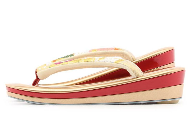 草履バッグセット 礼装用 <浅草匠> Lサイズ キステオリジナル <ゴールド系・赤青/花紋> 日本製
