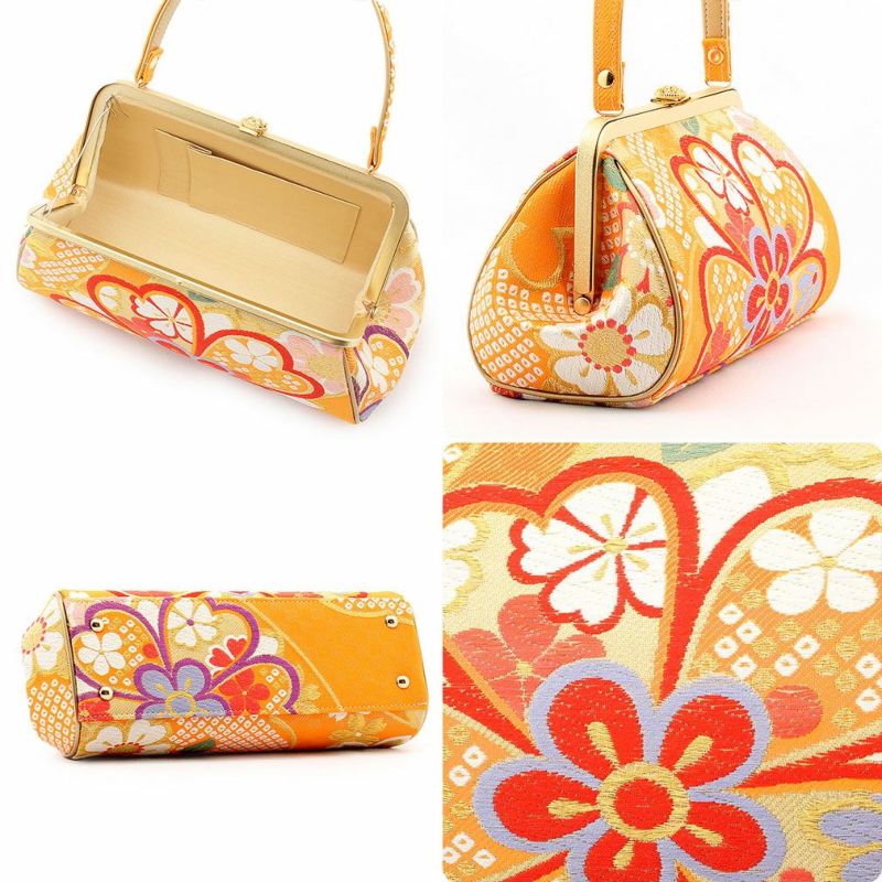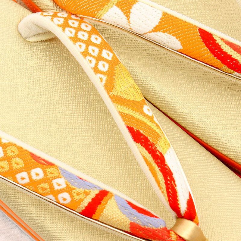 歩きやすい優花緒、初めての方にも安心の履き心地 草履バッグセット 成人式 振袖用 卒業袴 成人用 Sサイズ 金 オレンジ 朱赤 華紋 正絹袋帯地 2枚芯 優花緒 小さい 日本製
