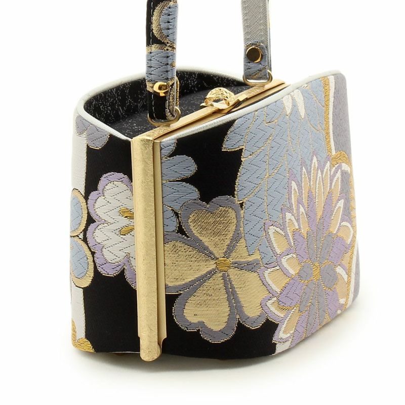 草履バッグセット 礼装用 <世美庵> Mサイズ 正絹袋帯地 <黒/流水に撫子> 日本製