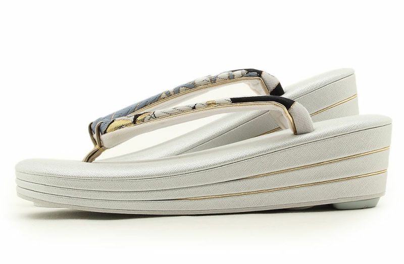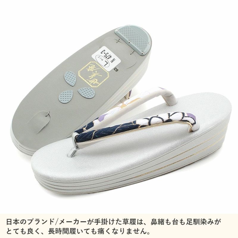 痛くなくて歩きやすい、初めての方にも安心の履き心地 留袖用草履バッグセット 訪問着用 浅草匠 Lサイズ ホワイトシルバー 万寿菊 正絹帯地 西陣織 3枚芯 日本製