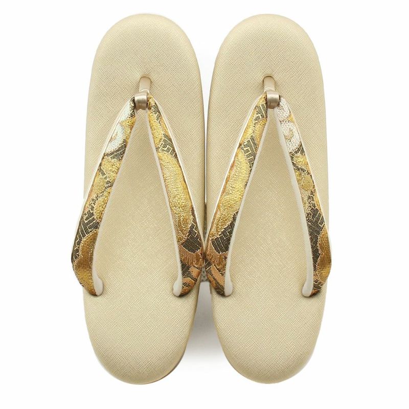 歩きやすい優花緒、初めての方にも安心の履き心地 草履バッグセット 成人式 振袖用 卒業袴 成人用 Sサイズ 金 ゴールド ホワイト 華紋 正絹帯地 2枚芯 優花緒 日本製