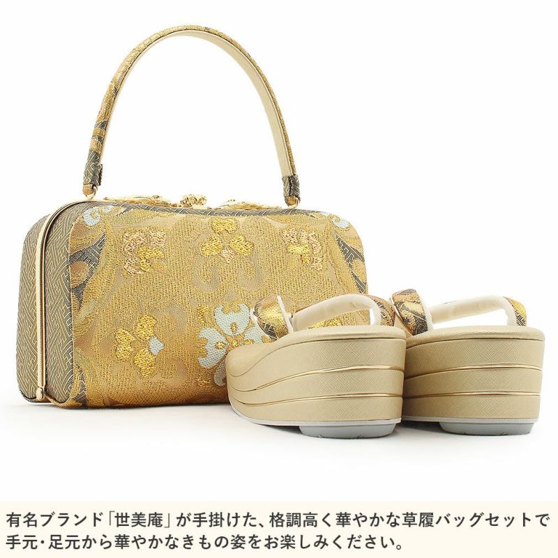 草履バッグセット 成人式 振袖用 <世美庵> Sサイズ Mサイズ Lサイズ LLサイズ 日本製 <ゴールド/吉祥紋> 日本製 正絹