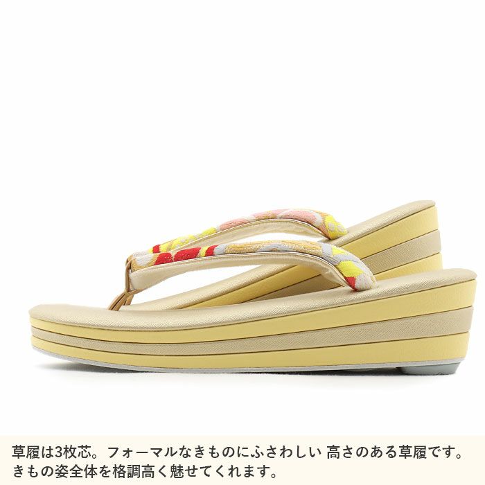 草履バッグセット 振袖用 フリーサイズ 正Lサイズ 絹帯地 <イエロー/梅> ハイヒール草履 4枚芯 日本製
