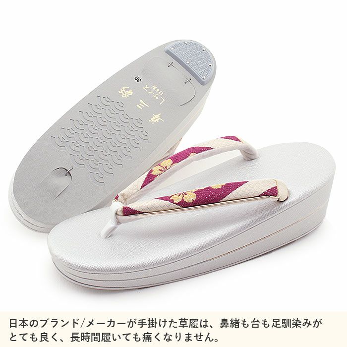 歩きやすい優花緒、初めての方にも安心の履き心地 草履バッグセット 成人式 振袖用 卒業袴 訪問着 付下げ 成人用 LLサイズ 銀 シルバー 白 ホワイト 華紋 正絹帯地 2枚芯 優花緒