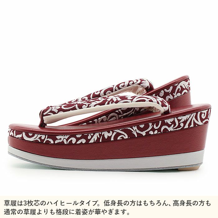 成人式や結婚式の華やかな振袖に合わせたい草履バッグセット。 草履バッグセット 振袖用 Mサイズ 黒 赤 洋唐草 ダマスク 正絹 彩小路 3枚芯 ハイヒール 厚底 がま口 日本製