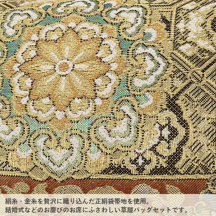 草履バッグセット 留袖用 バッグ 草履 礼装用草履バッグセット礼装 草履 バッグ 留袖 フリーサイズ Lサイズ ゴールド シルバー 金 銀 華紋 松竹 道長取り 花菱 正絹帯地 日本製 草履バックセット 草履バッグ 草履
