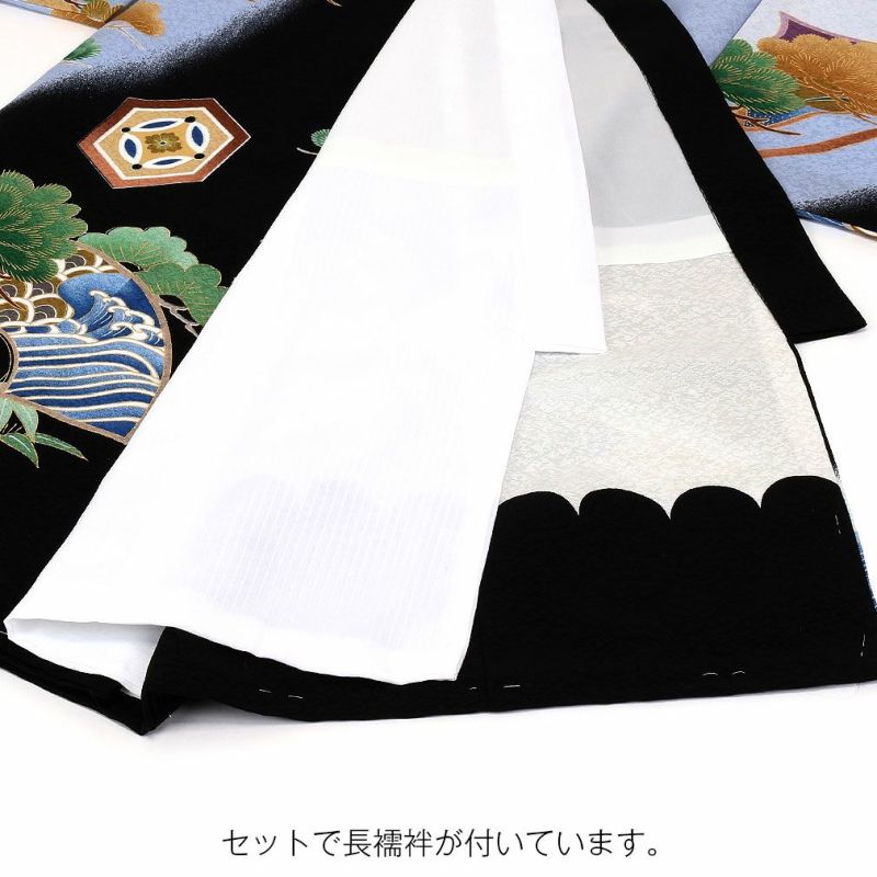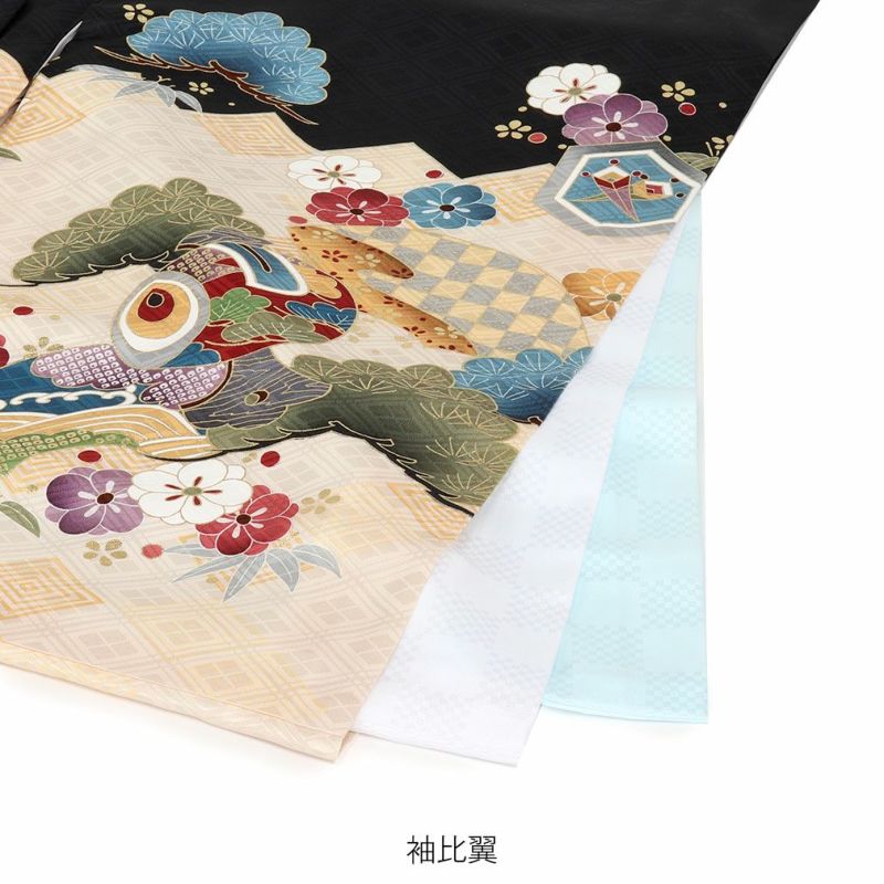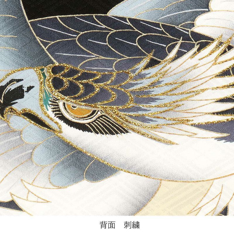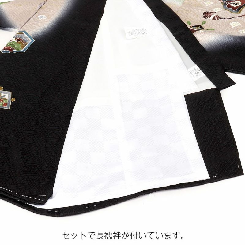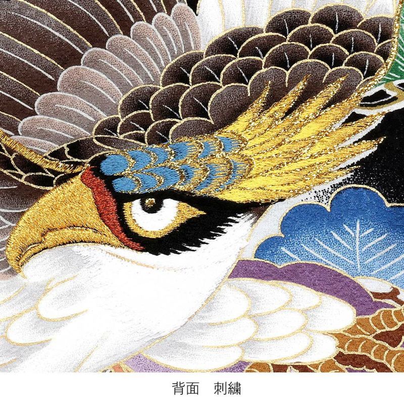 ≪在庫限り≫ 男の子 赤ちゃんのお宮参りの着物 お宮参り 着物 男の子 絹 正絹 掛け着 産着 黒 鷹 兜 甲冑 武具 色紙紋 飛翔 松竹梅 三段松 吉祥紋 友禅 刺繍 金彩 金たたき 新品 販売 購入 きもの 祝い着