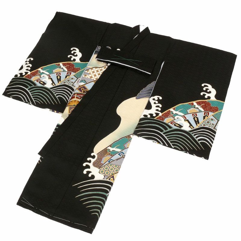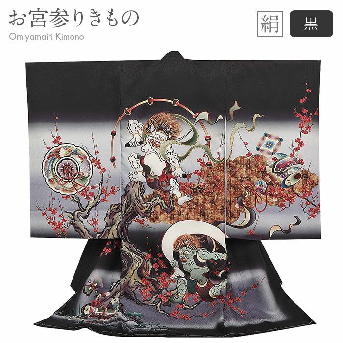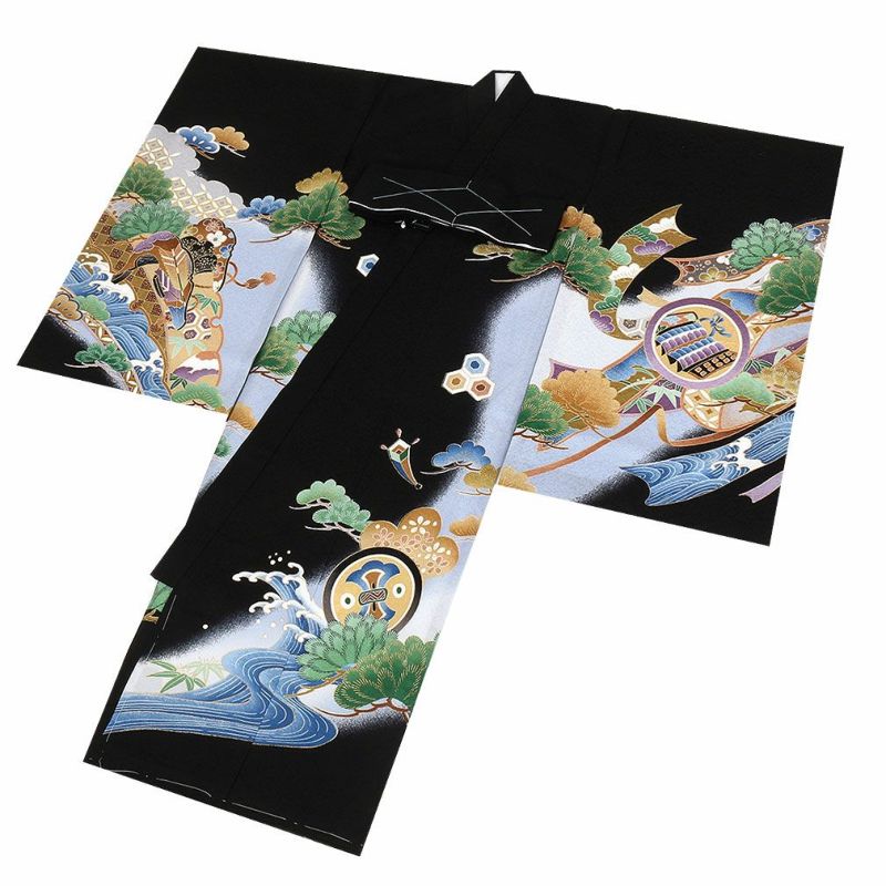 お宮参り 着物 男の子 産着 祝い着 黒 風神雷神 小槌 巻物 正絹 のしめ 掛け着 初着 服装 赤ちゃん 販売