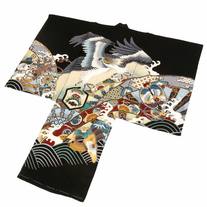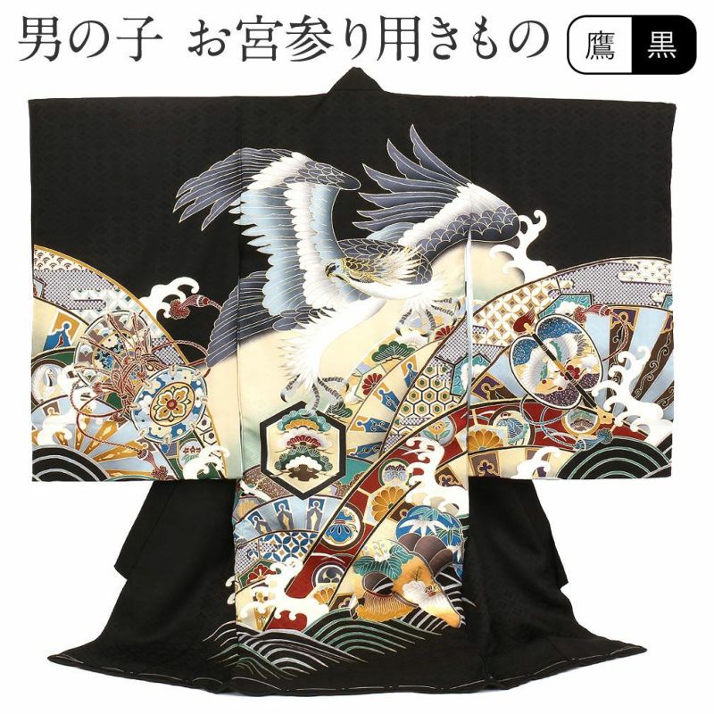 お宮参り 着物 男の子 産着 祝い着 黒 鷹 兜 正絹 のしめ 掛け着 初着 服装 赤ちゃん 販売