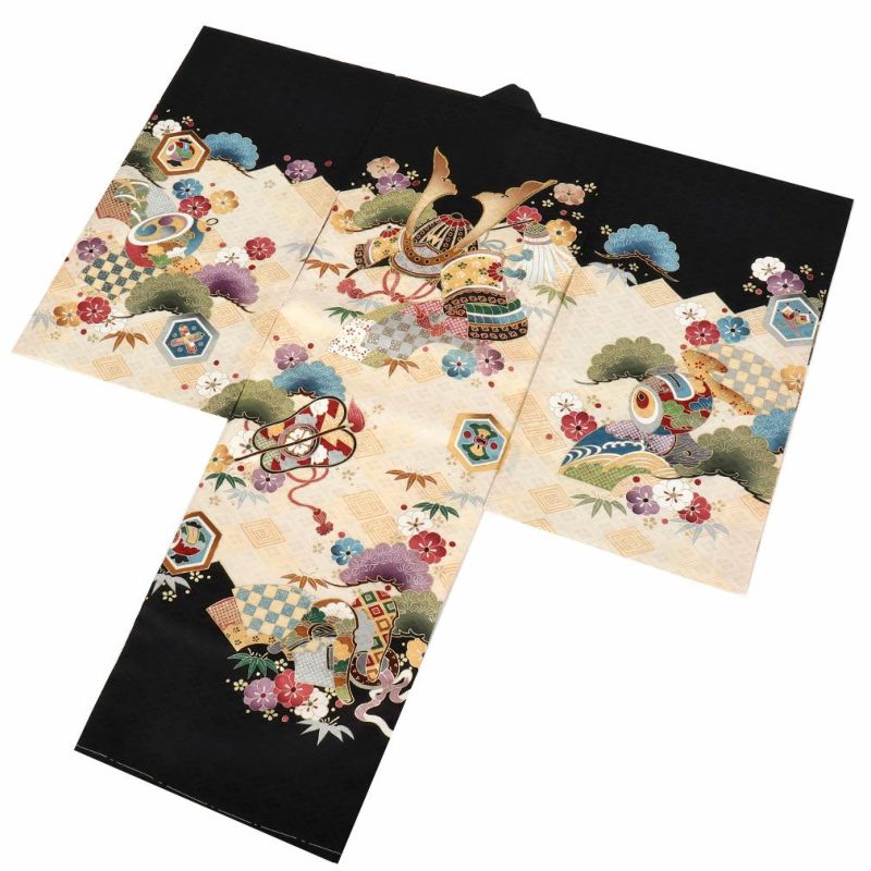 お宮参り 着物 男の子 産着 祝い着 黒 兜 扇 軍配 正絹 のしめ 掛け着 初着 服装 赤ちゃん 販売 日本製